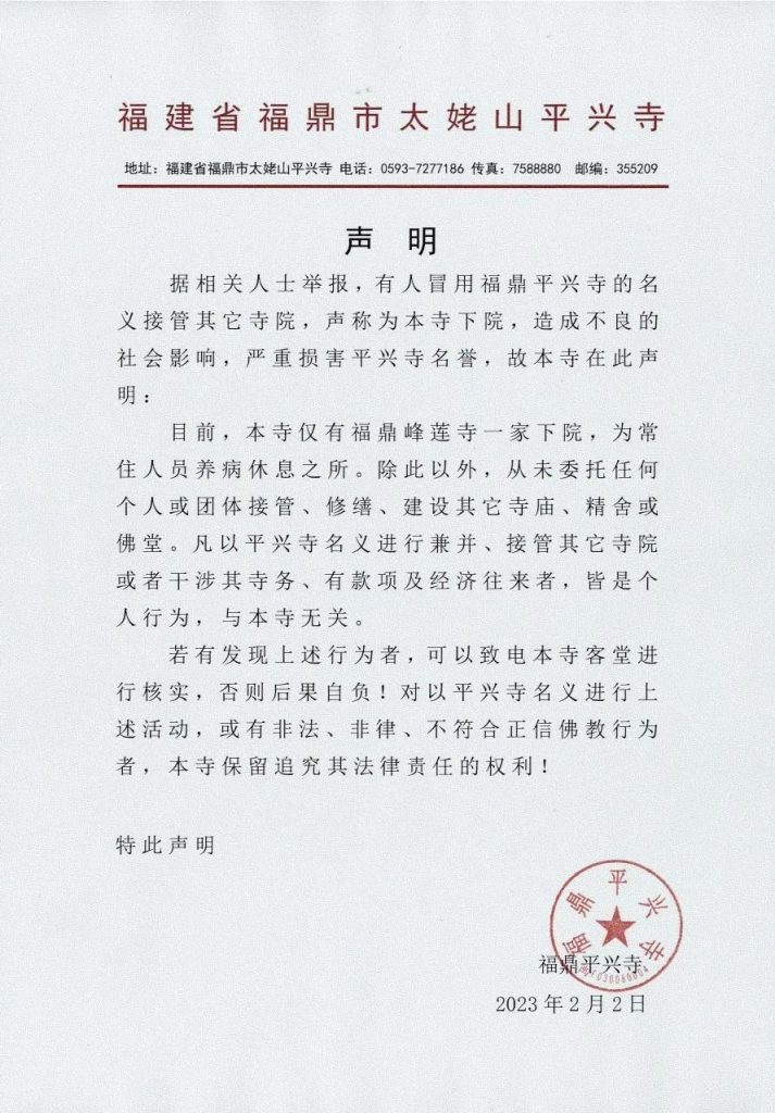 太姥山平兴寺声明 编辑 志斌 • 2023年2月2日 下午5:04 • 资讯 来源:清涼影音工作室 太姥山平兴寺 时间:2023-02-02 本网站属于非赢利性网站,转载的文章遵循原作者的版权声明,如有版权异议,请联系值班编辑予以删除。 联系方式:0591-83056739-818 18950442781 赞 (0) 编辑 志斌 0 0 生成海报 净行无暇,临终佛来迎 | 莲宗七祖省常大师往生纪念 上一篇 2023年2月2日 下午4:59 江苏省佛教协会第七次代表会议在南京召开|秋爽法师当选会长 下一篇 2023年2月2日 下午6:36 相关推荐 资讯 中国佛教协会第十届理事会佛教教育委员会第四次会议在浙江杭州召开 000 三三两两 2025年4月3日 资讯 中国佛教协会第十届常务理事会第四次会议在京召开 000 三三两两 2025年7月1日 资讯 辣妈孙俪、男神林志颖爱吃的“平民燕窝”,不开火免备料,60秒就搞定~ 000 编辑:庄雅婷 2025年11月21日 资讯 2024真宁净寺结夏安居通告 400 三三两两 2024年4月23日 资讯 寺庙新现象:年轻人成主流,拜佛报身份证号家庭住址 100 编辑 志斌 2022年11月1日 资讯 洗衣机下岗了?用它泡一泡衣服鞋子油渍、污渍瞬间溶解!比手洗还干净,省心省力更省钱,用一次就爱上! 000 编辑:庄雅婷 2024年3月19日 资讯 南岳天台研究所招生简章 000 编辑:泷中 2021年8月6日 资讯 往生极乐世界九品莲位图文详解 500 编辑 志斌 2022年11月6日 资讯 云居山辛丑结夏安居启建华严法会 500 编辑:泷中 2021年6月24日 资讯 宁波七塔禅寺迅速采取措施抓好疫情防控 000 编辑:泷中 2021年8月12日 发表回复 您的邮箱地址不会被公开。 必填项已用 * 标注*昵称: *邮箱: 网址: 记住昵称、邮箱和网址,下次评论免输入 提交