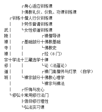 打通规矩-实修-教理,系统学修,从浅的日常身心行为训练,到佛法学习、禪门修炼,三者皆具,旨在通过系统学修建构提升行者素质,为专业修道打下深厚基础。