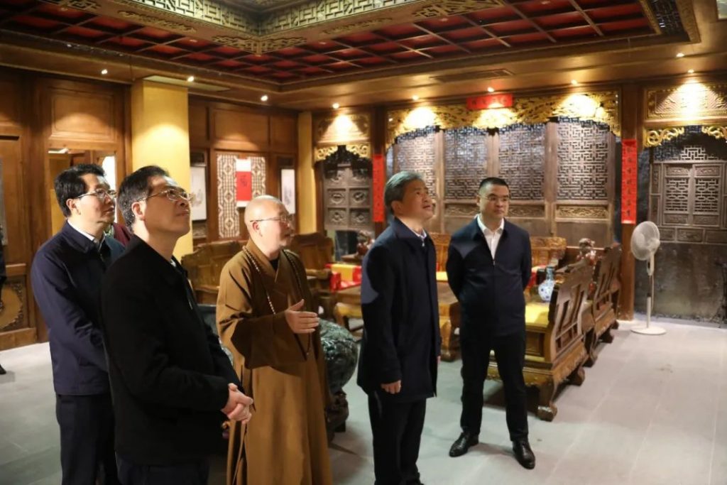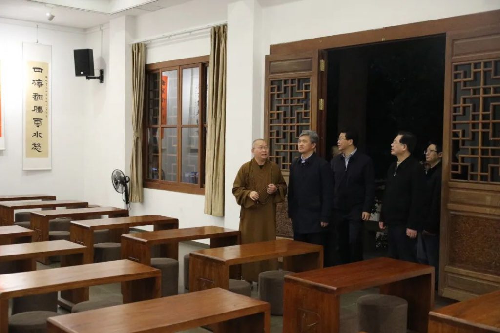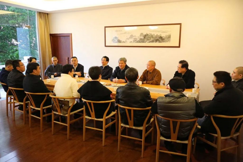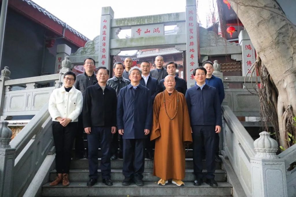 调研组一行先后到鸿山寺各殿堂、鸿山慈善会、鸿山书院实地参观调研,随后围绕宗教中国化、弘扬中华优秀传统文化等议题开展了座谈交流。