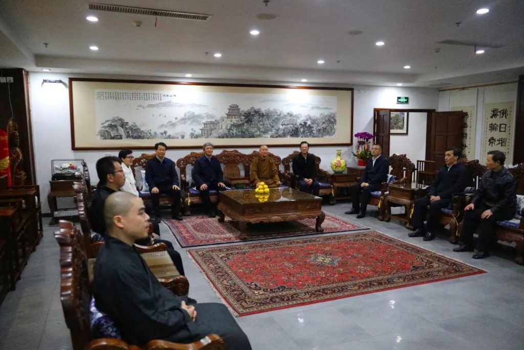 方丈法云大和尚首先对调研组的到来表示热烈的欢迎,并汇报了鸿山寺近年来各项工作情况。在听取汇报后,阮诗玮对寺院弘法利生及践行宗教中国化、弘扬传统文化工作表示肯定。