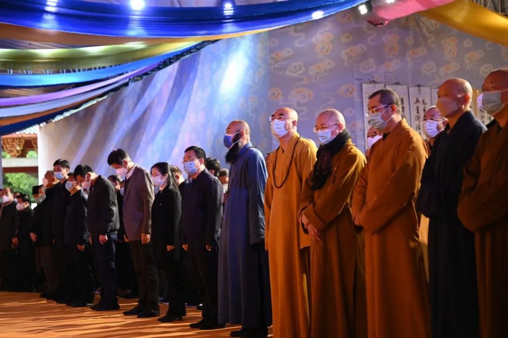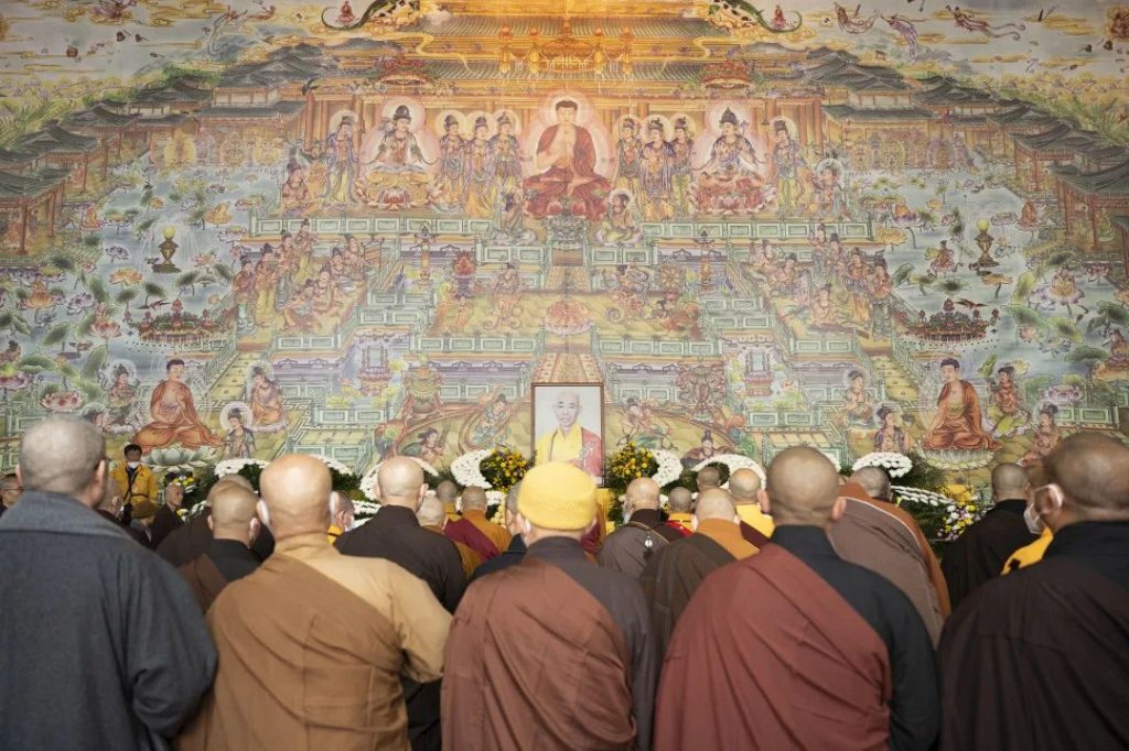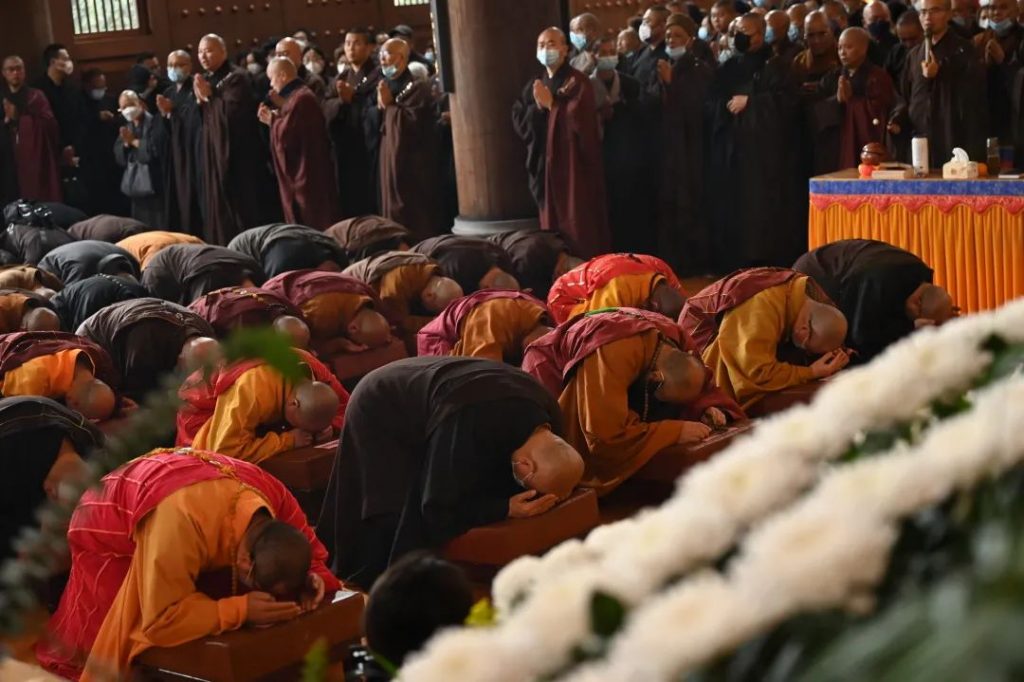 追思会结束后,在法堂举行回向法会。伴随着清净庄严的《炉香赞》梵音,诸山长老祈愿广霖老和尚莲品高登、不舍有情,慈舟返航,乘愿再来。
