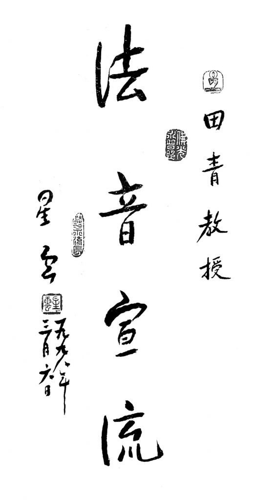 回忆我和星云大师的佛乐因缘,我深深感恩此生能有缘亲近赵朴老和星云大师这两位大德、大菩萨,是在他们的引领、鼓励、指导下,我有幸做了一些弘扬佛法、促进两岸和平的事情,虽然经历了一些困难、甚至误解,但依然深以为幸,从不后悔。也深深感恩流传了千百年、也必将随着“佛光普照三千界,法水长流五大洲”而流布全世界的佛教音乐,没有佛教音乐的因缘,没有当年那只“迦陵频伽”的唤醒,我的一生,就不会是现在的样子。星云大师2011年为我的佛乐论文集《佛教音乐的华化》作序说: