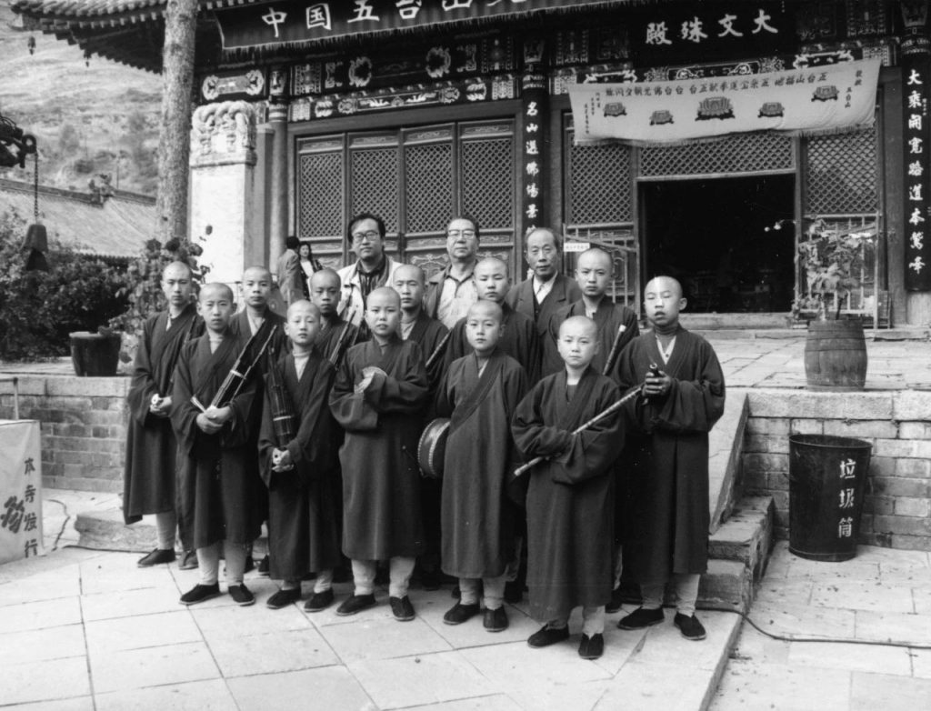 汉传佛教的音乐,历史悠久,丰富多彩,从唐代即呈现了各具地域特色的多样性,用唐道宣律师的话说,就是“地分郑卫,声亦参差”,“神州一境,声类既各不同”,而大陆佛教音乐一个最大的优势就是保留着历史悠久、曾经极大地影响了中国民间音乐的佛教器乐曲,而大陆北方佛乐最著名的就是五台山佛乐和北京智化寺佛乐。1989年我曾组织当时已入衰年的释了满、释了丛等法师以“五台山佛乐团”名义参加在香港举行的“中国佛教音乐研讨会”的演出,那是大陆“文革”后第一个赴境外的佛教团体;而1997年底我再去五台山时,原来的这几位技艺超群的艺僧或已往生或已老病,俱已零落,岂不哀哉!所幸当时五台山周边一所小学退休的校长李洪儒发心组织了一批穷苦人家有悟性的孩子学习佛乐,但他能力有限,既要请老师,又要管孩子们的食宿,在困境中他给赵朴老写信求助,朴老当即从自己的工资中拿出一笔钱,命我和李家振居士去看望他们,那时候,这些孩子既没有皈依,也没有长远打算,只是找个地方吃饭而已。我对孩子们说:我没有钱资助你们,但你们只要好好学习佛乐,我可以带你们去台湾演出,见见大世面。这就是1998年2月我带去台湾在台北音乐厅演出的“五台山沙弥乐团”的缘起。这些孩子在台湾看到佛教的兴盛和出家人在社会上受尊敬的状况,受到极大促动,回到大陆后,皈依剃度,成了真正的沙弥。2003年11月在北京“中国佛乐道乐精粹展演”原请了五台山殊像寺的佛乐团,但因缺乏训练,演出效果欠佳,希望重启这几位“小沙弥”,才知道他们回国出家后,已各随因缘落脚在广东乳源云门寺、汕头安寿寺等处。佛协把他们重新聚拢,遂在之后的演出中重张五台山佛乐的大旗,而此时的他们,早已脱去当年在台北音乐厅登台时稚气的面容,各个法相庄严,已成气象矣!