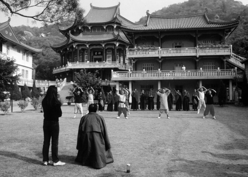 田青和五台山武僧及拉卜楞寺乐僧排练《八段锦》,背坐者田青,背立者刘静