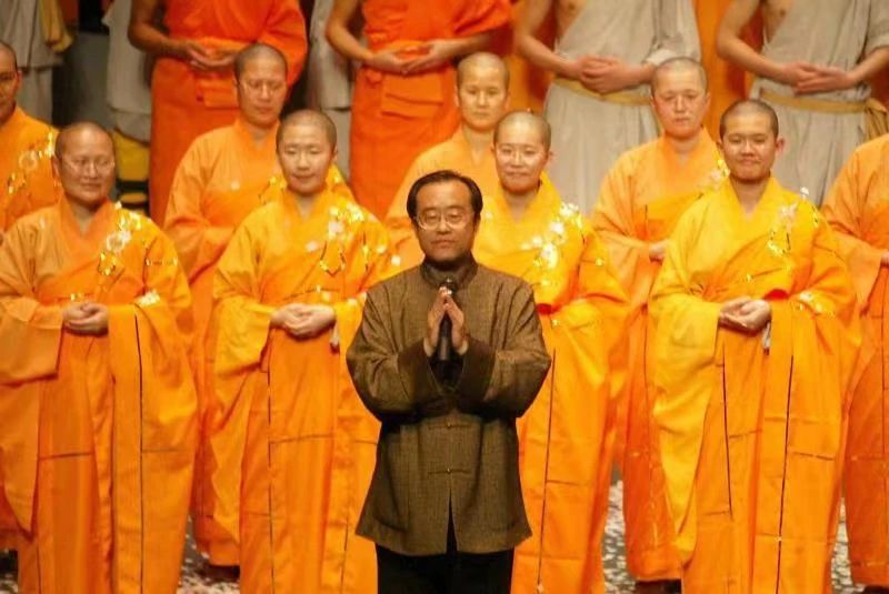 那场演出效果空前,中国佛教几百年来从没有过这样盛大的演出,更是1949年之后大陆绝无仅有、超出想象的事情——就在天安门的旁边,上百名京城平时罕见的和尚、道士身披袈裟、道袍昂首高唱梵呗、步虚。作为音乐会的主持人,面对场内绝大多数“唯物主义者”,我必须在每个节目开始前做一个简单的介绍,让听众知道台上唱的是什么,更重要的是还要为这场“惊世骇俗”的活动找到一种合理性。我在开场时说:“人类自古以来就在努力向两个方向探索,一个是向外,探索宇宙、世界、物质,一个是向内,探索自己的内心。今天,愈来愈多的人发现,探索自己的内心比探索世界更困难。我们可以向外太空发射宇宙飞船,但我们还是免不了烦恼?怎么办?听佛教音乐。今天的音乐会,就是为了让大家少烦恼,带给大家一丝清凉。”遗憾的是由于大师未能来京参加首演,音乐会最后只能请慈惠法师代表大师致辞。