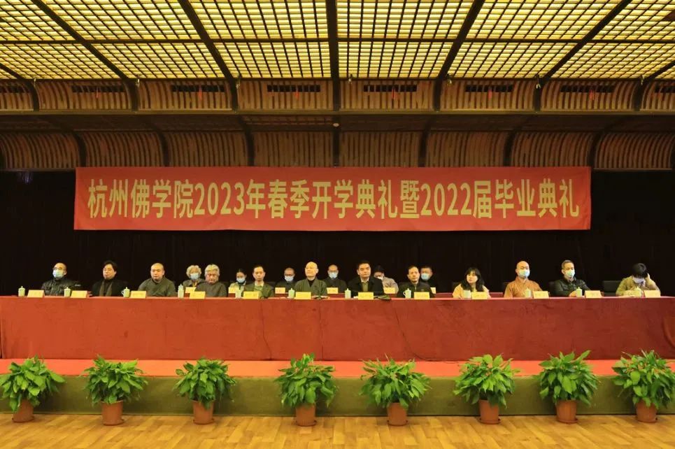2月20日上午,杭州佛学院2023年春季开学典礼暨2022届毕业典礼在佛学院法云校区禅堂举行。