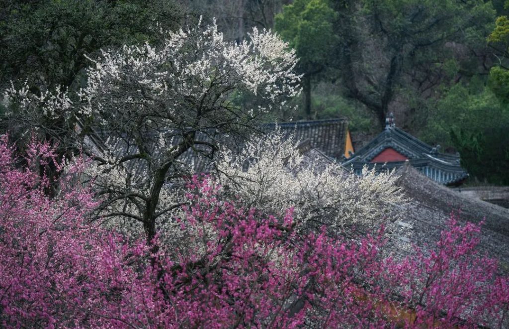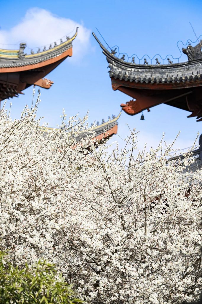 唐黄檗禅师有诗云:“不经一番寒彻骨,怎得梅花扑鼻香”。自古以来,中国寺院园林总是不缺梅花的衬托。梅花的冰清玉洁与莲花有着异曲同工之妙,坚强的精神则与佛教六度当中的“精进”内涵相通;凌霜傲雪的不屈品格,能够体现佛教修行人为求正法、不畏困难的精进精神。古刹花开,“梅”景正好,让我们一起走入摄影师的镜头,开启一段“镜”观参禅之旅吧。