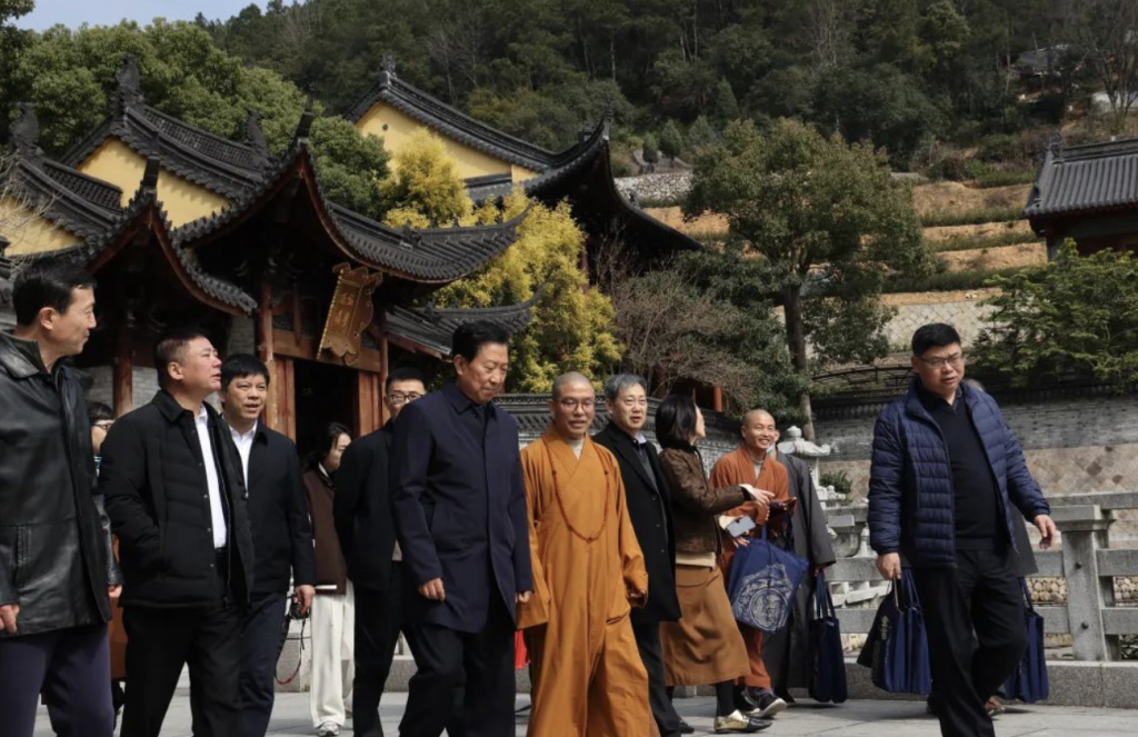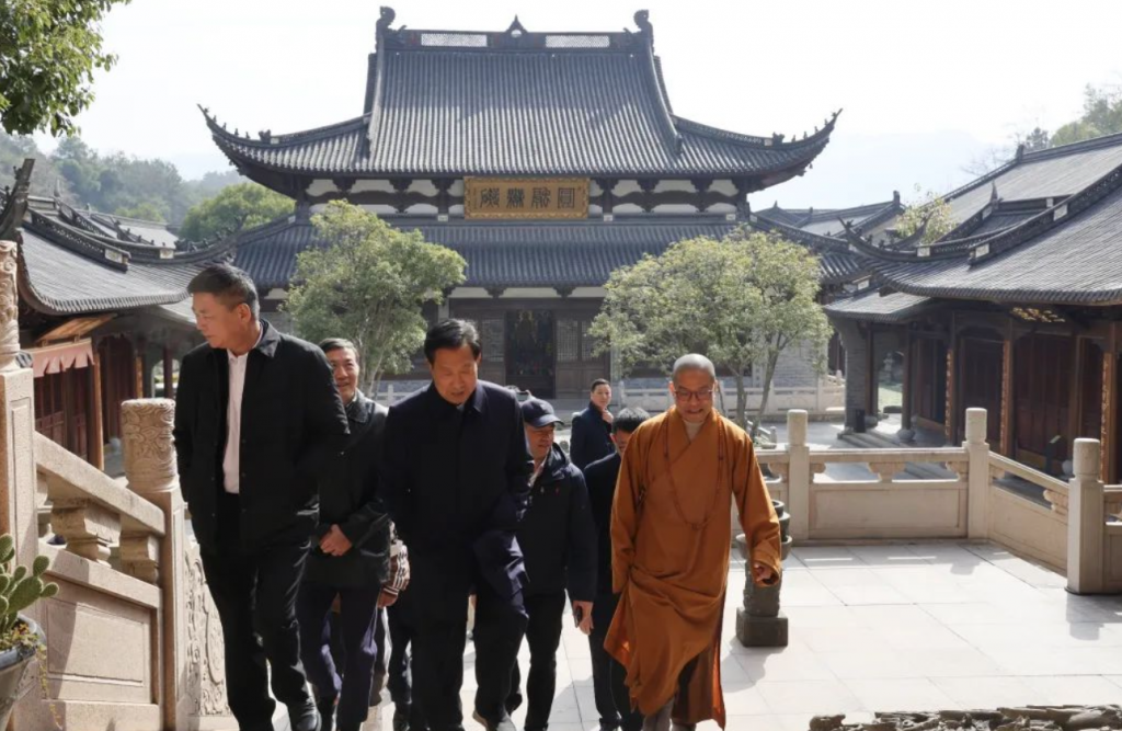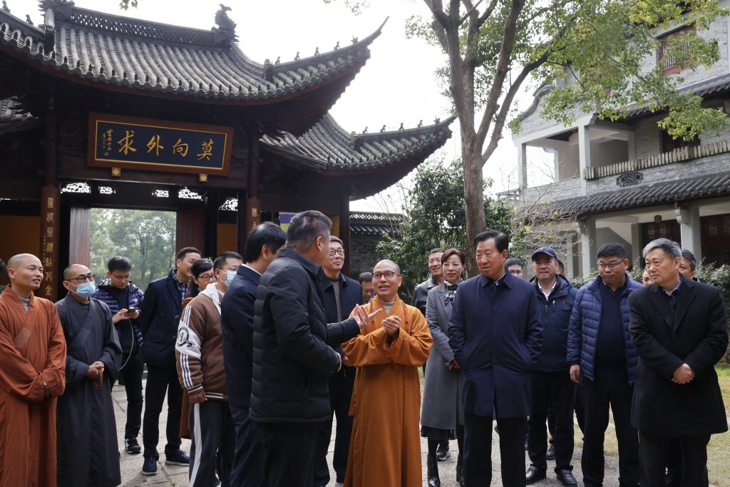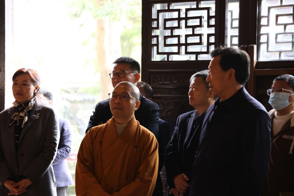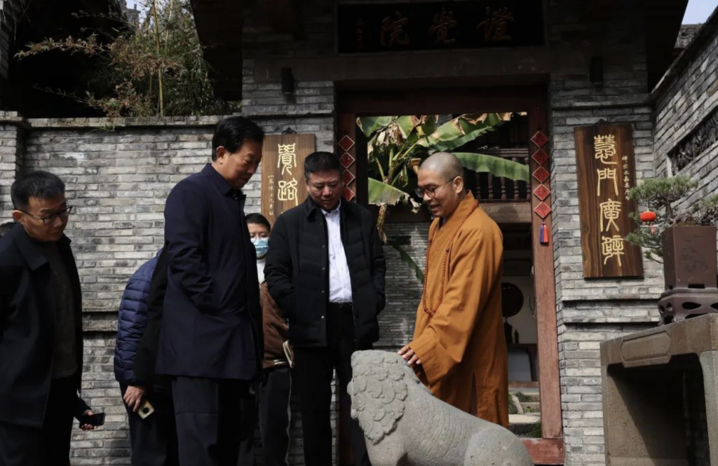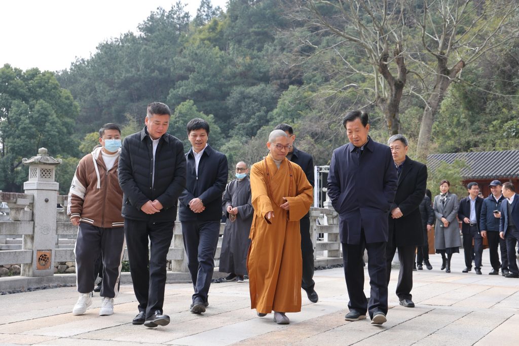 2023年2月23日上午,全国人大华侨委委员、省十二届人大常委会党组书记、副主任王辉忠、省人大常委会委员、民宗侨外委主任委员林天宁、省人大常委会外事工委主任宋建勋等领导一行7人,在市人大常委会党组书记、主任葛益平、市人大常委会党组副书记、副主任陈建明、瓯海区委书记曾瑞华、瓯海区人大常委会副主任李康等相关领导的陪同下,莅临头陀寺考察调研。头陀寺方丈悟智大和尚热情接待了调研组一行,并汇报相关工作。
