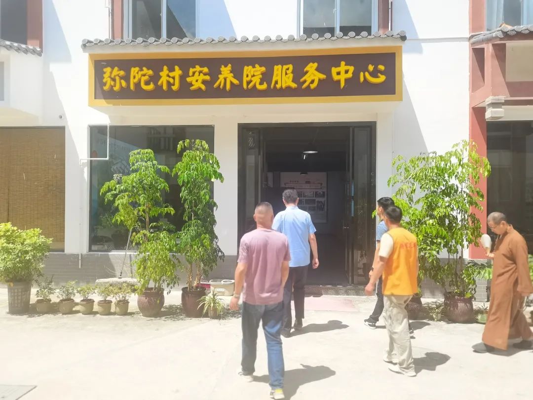 而后,贤志法师引领众人参观了寺院及弥陀村养老院,并为领导们简单介绍了佛教文化与佛教中国化,汇报了寺院和养老院日常事务的管理情况。