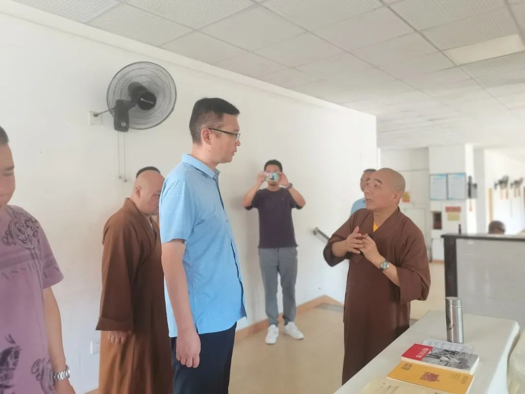 调研领导首先在资国寺莲峰文化广场——福鼎市佛教协会办公大楼召开了座谈会。就全市佛教寺院的消防安全、房屋安全,疫情防控常态化,宗教工作三级网络、网格化管理,“四进寺院”及“四史进寺院”等宗教工作进行了调研。
