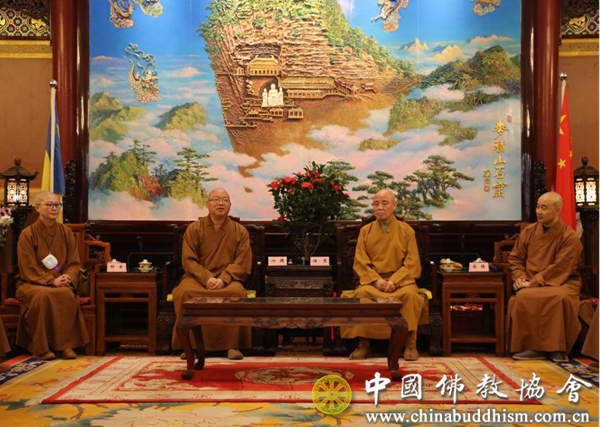 中国佛教协会副会长宗性法师、常藏法师,秘书长刘威,副秘书长卢浔、宏度法师、普正法师、毕永祥及各部室负责人等一同参加会见。