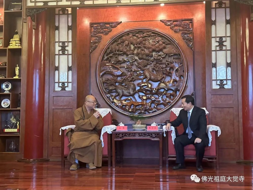 图说:陈小江副部长会见台湾佛光山寺住持心保和尚一行
