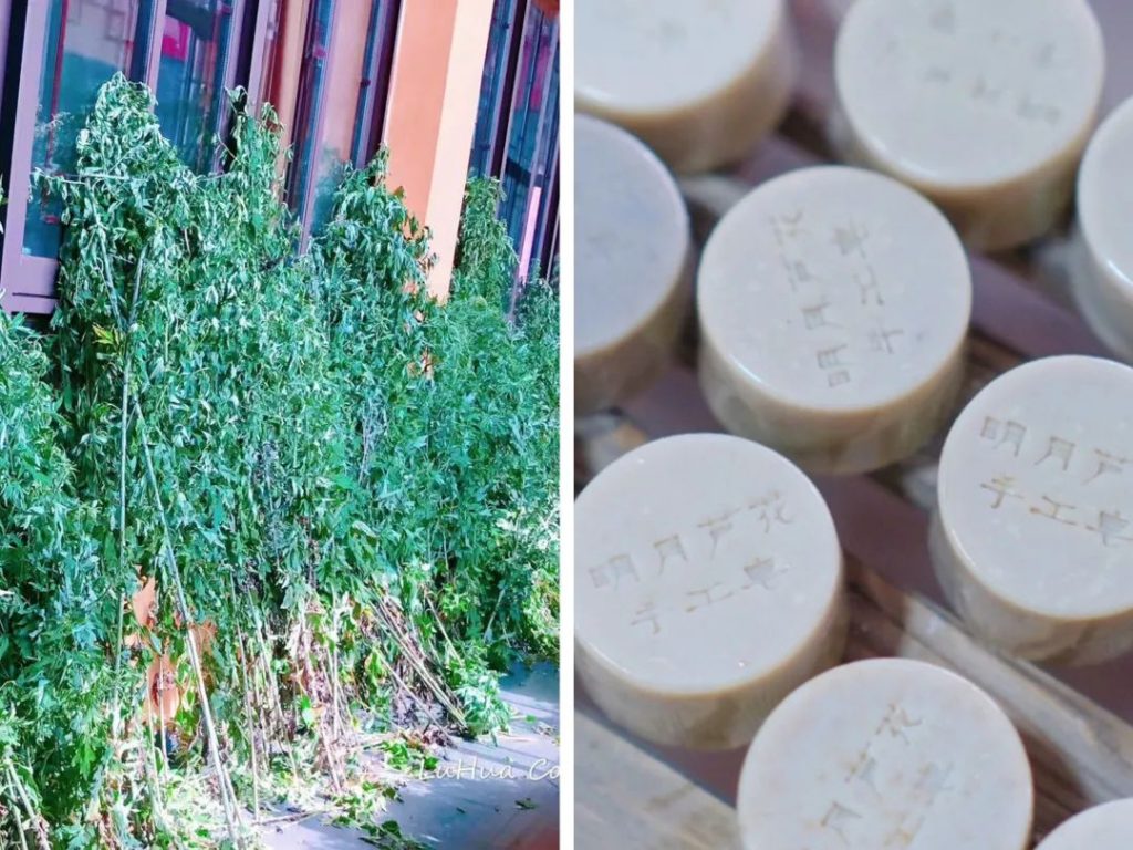 采摘端午艾叶,传承传统工艺做成手工皂,与信众结缘