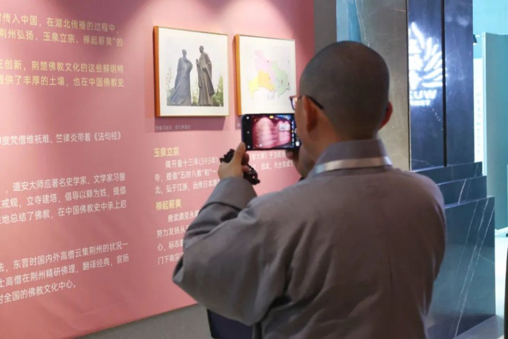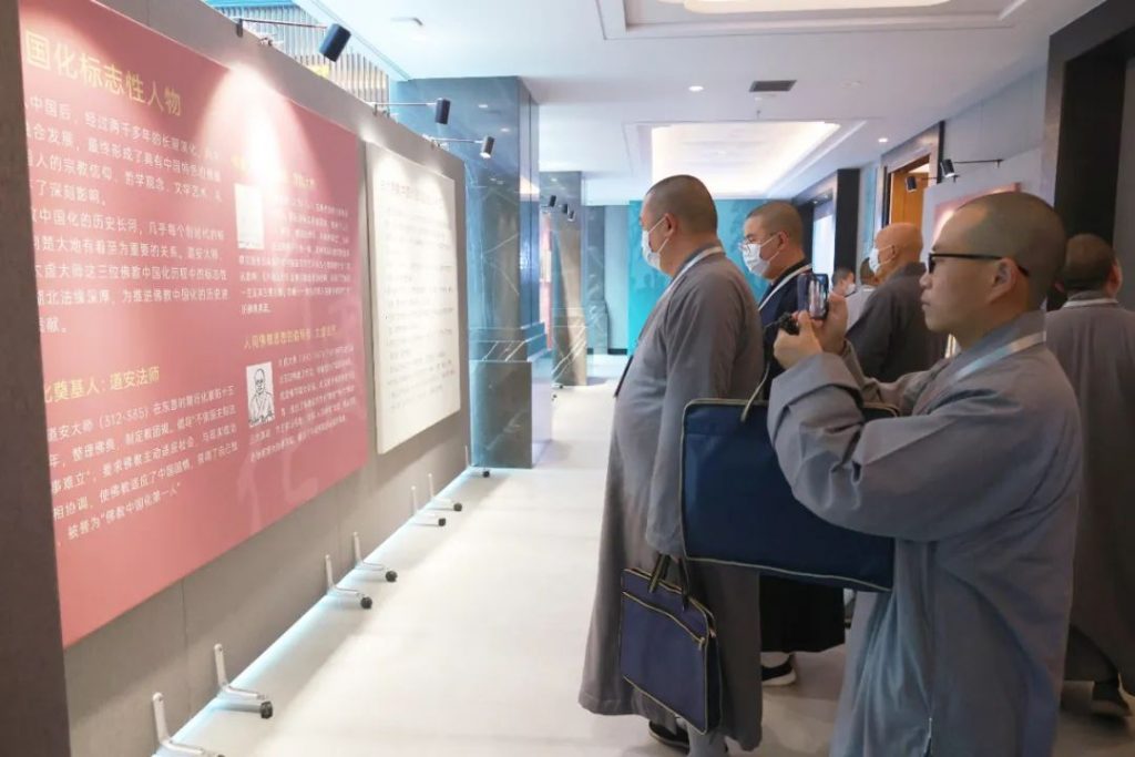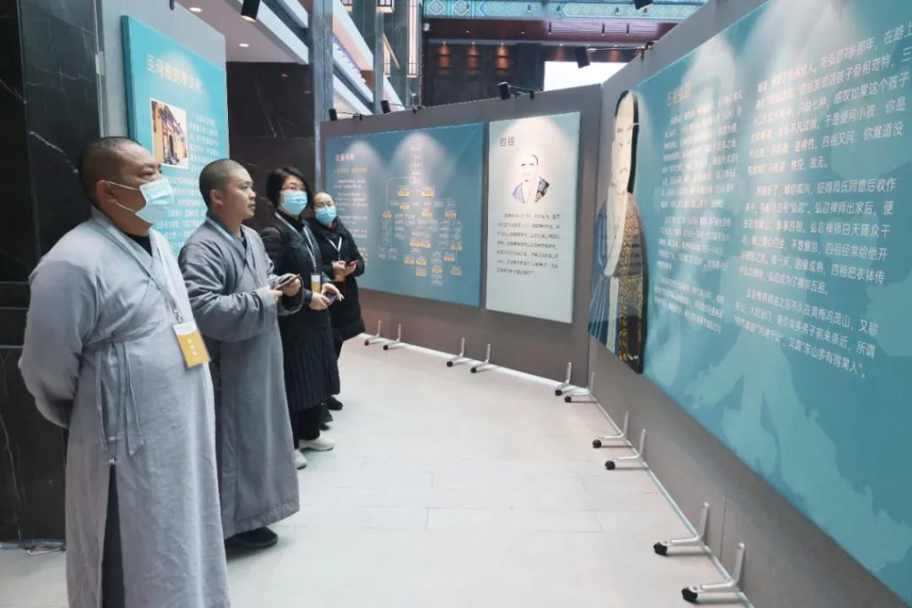 参会人员在黄梅五祖寺东山阁参观了“禅起蕲黄——五祖寺佛教中国化历史文化展”。文化展以佛教中国化为主线,综合运用图文、音视频、书法等多种展出形式,系统展现了荆楚佛教、黄梅禅宗和五祖寺佛教中国化的历史脉络和当代实践,是湖北省佛教界首次举办的以佛教中国化为主题的文化展。展览包括5个单元、80余块展板、230余张图片,主题鲜明、史料翔实、内容丰富。
