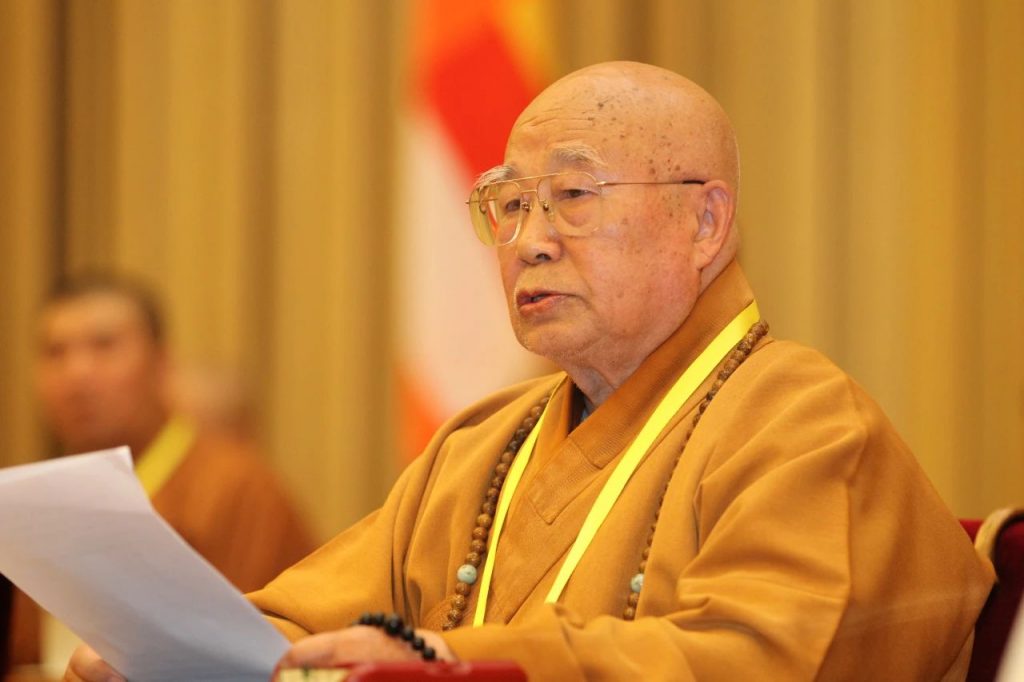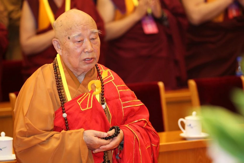 ▲2015年4月19日,传印长老在中国佛教协会第九次全国代表会议开幕会上致辞。中国佛教协会供图