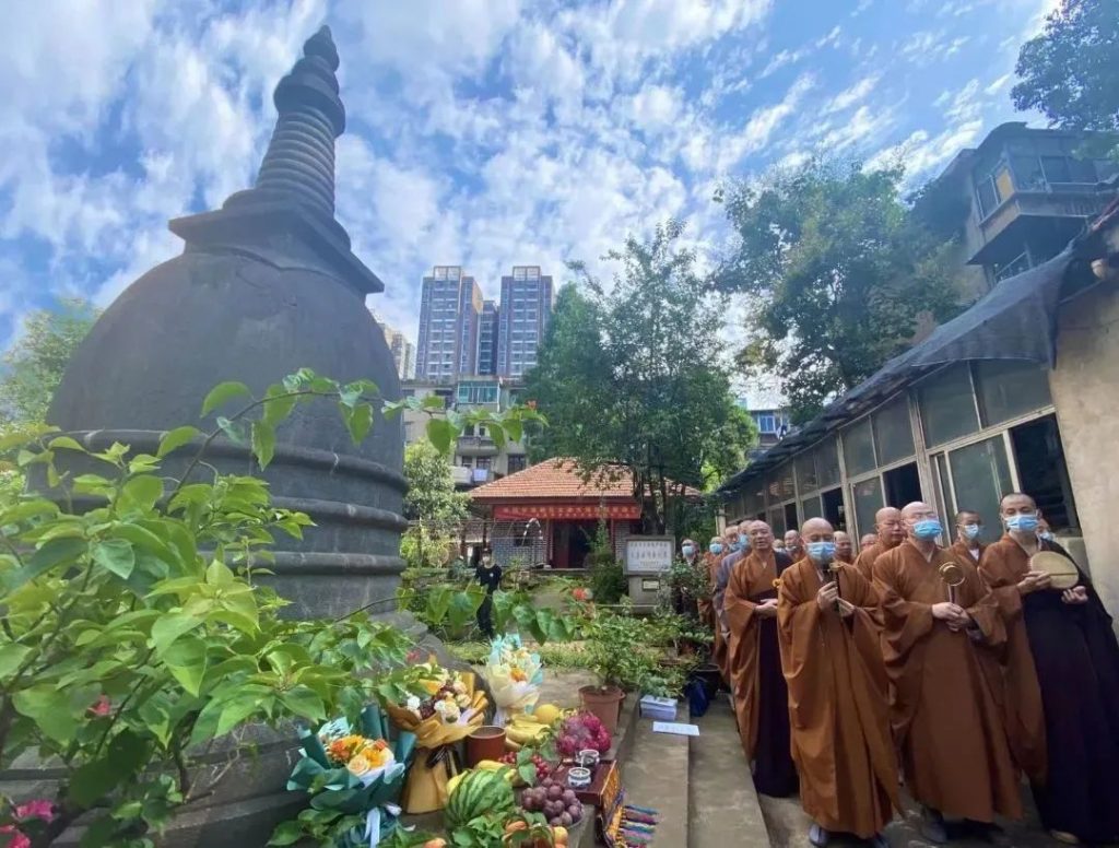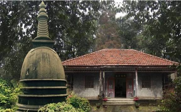 武昌佛学院旧址内的太虚大师舍利塔及潮音茅蓬