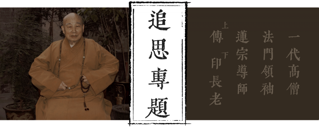 庐山东林寺中兴退居、一代禅门耆宿、莲宗导师上传下印长老,慈心悲愿,戒德庄严。法源施教,昌隆灵山嫡旨;东林驻锡,大畅远公遗风。穷其一生,不倦津梁,全为佛法,慈济群萌。缅惟长老一生,道念坚固,信仰笃诚,爱国爱教,正信正行。历尽劫波,无怨无悔,艰苦备尝,不退初心。弘传戒法,作育僧伦。传戒得法弟子满天下,受教蒙恩学僧遍缁林。缁素共仰,政教同钦,功德巍巍,道化圆成。然则报体终有限,四大本无常。一朝归去,亲见弥陀,功圆果满,莲开上品。