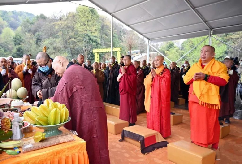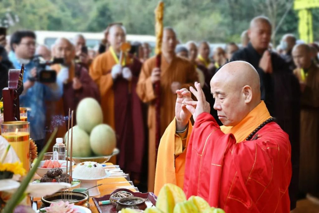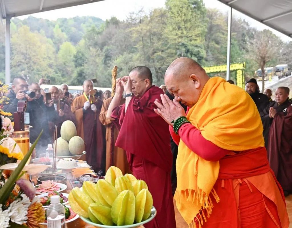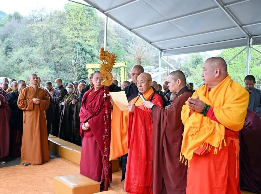 上午10时30分,由中国佛教协会会长演觉法师、中国佛教协会副会长帕松列龙庄勐、胡雪峰喇嘛等三大语系高僧共同主法,诸山长老及传老之法子徒众等参加仪式。