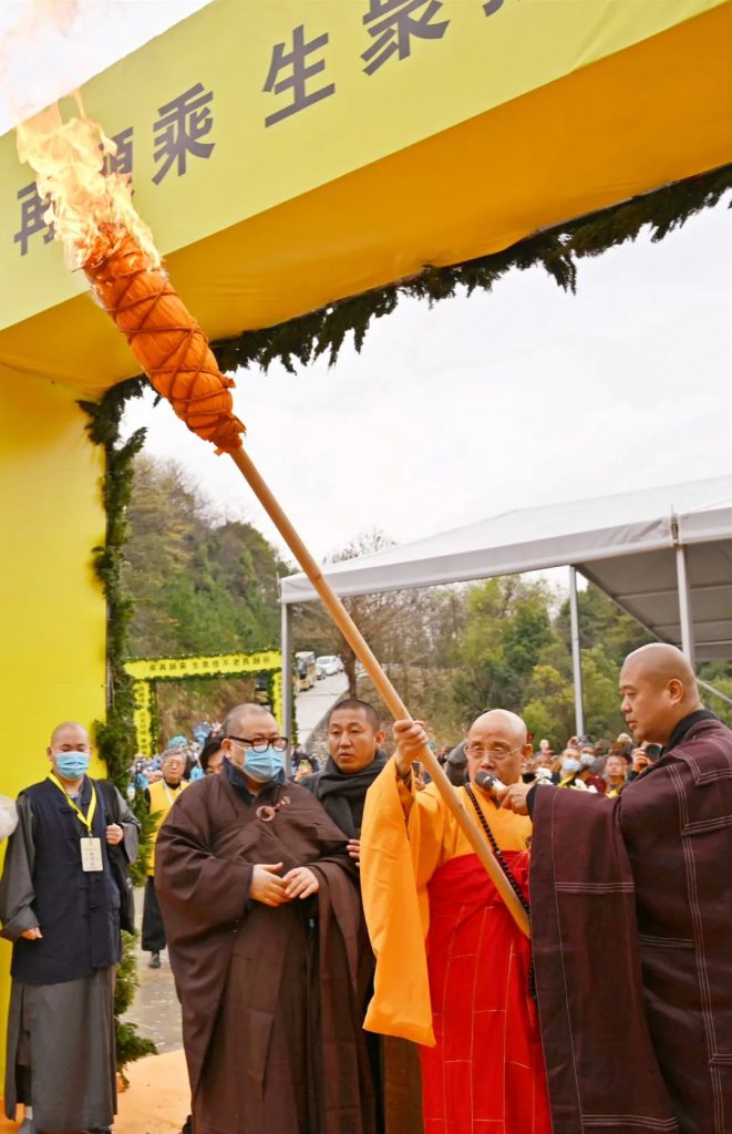 ▲演觉法师举火