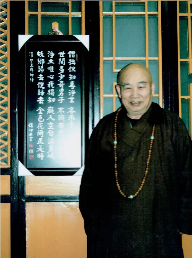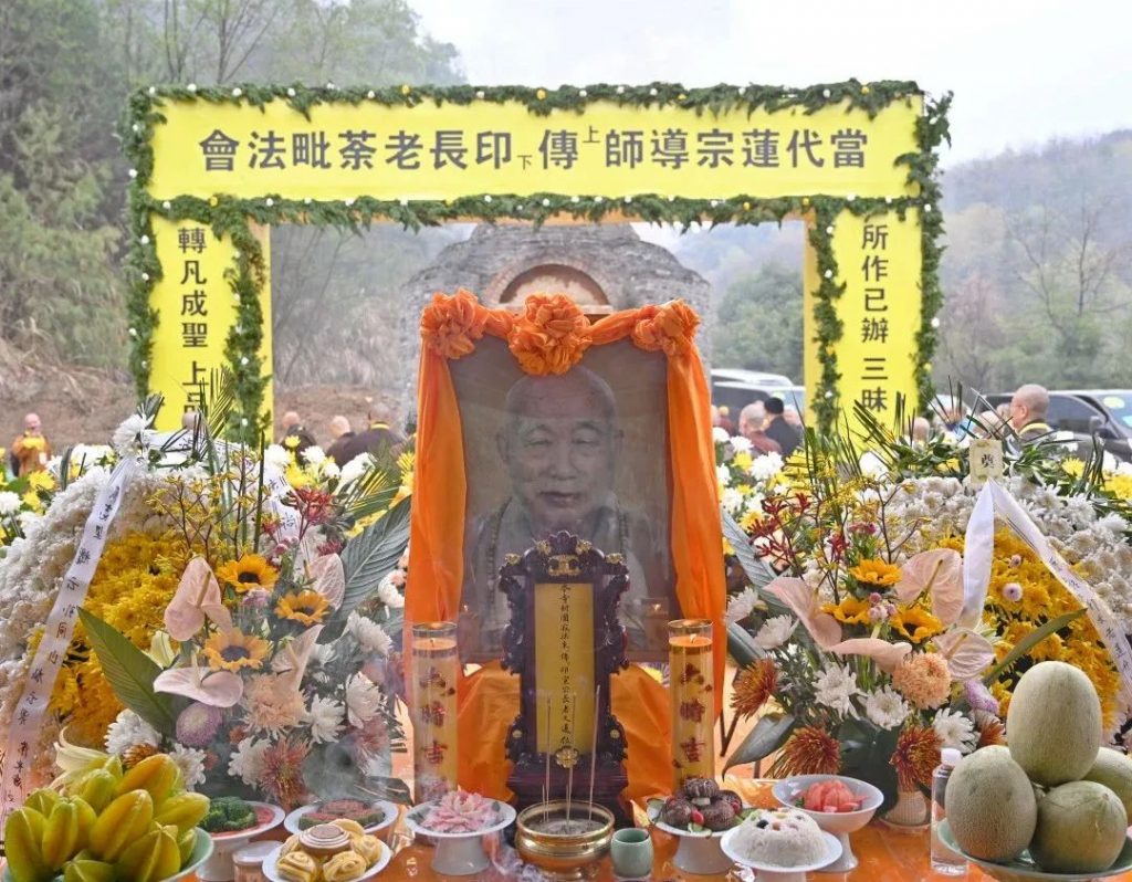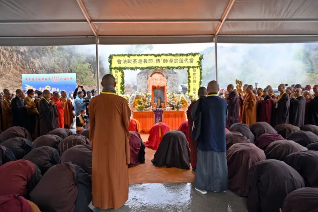 今者谨尊佛制,如法荼毗,大众念佛,恭送云程。惟愿长老寂光真照,灵觉妙明,得大自在,证解脱身。极乐国中,常念娑婆疾苦。八德池畔,心系苦海苍生。倒驾慈航,乘愿再来。