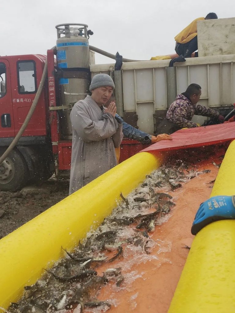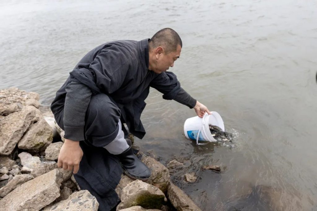 长江之畔,东林佛子的声声佛号荡气回肠,唱响了对长老的深深思念。在佛号声中,鱼儿从车上倾泻而下,顺着滑道进入长江。百万生命重获自由,欣喜雀跃,畅游在碧波浩渺的江水中。