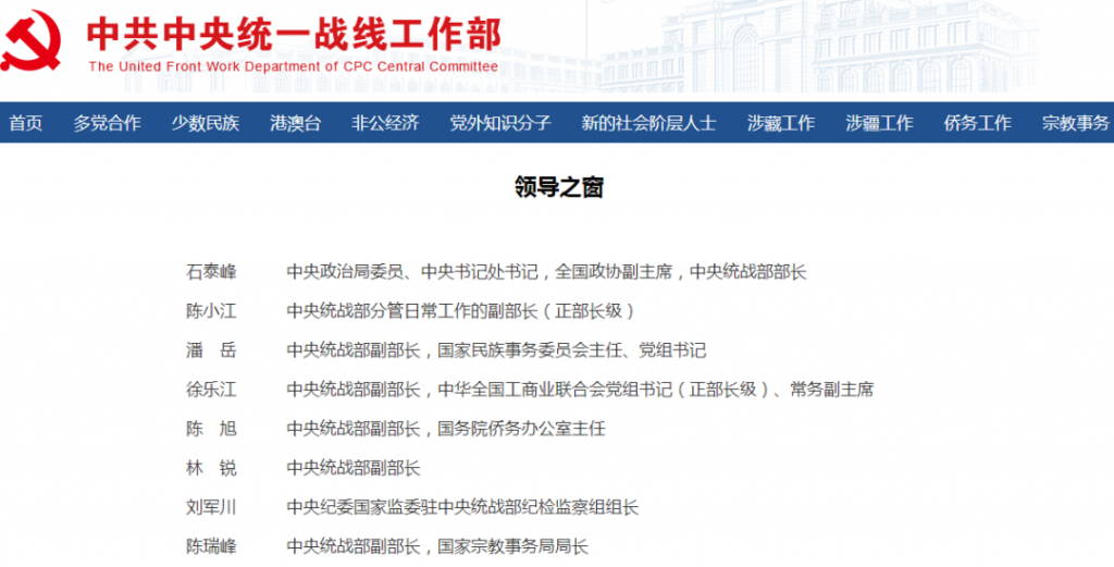 据中共中央统一战线工作部网站“领导之窗”信息显示,陈瑞峰已任中央统战部副部长、国家宗教事务局局长。