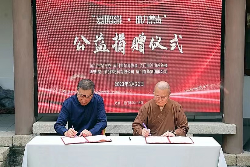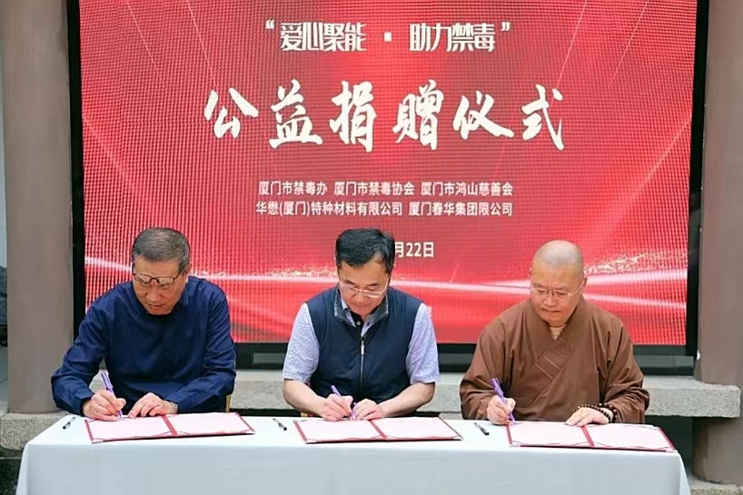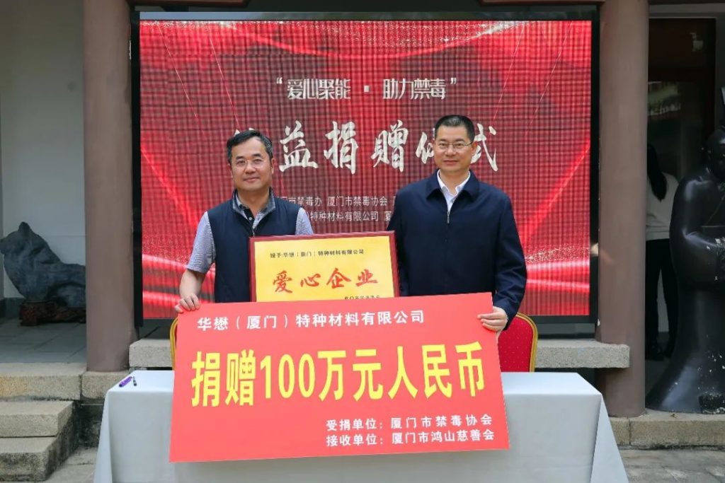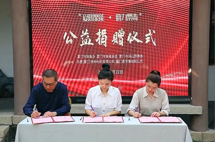 禁毒爱心企业华懋 (厦门) 特种有限公司、厦门春华集团积极响应提供资金支持,为厦门市毒品治理工作和禁毒示范城市争创工作做出积极贡献。