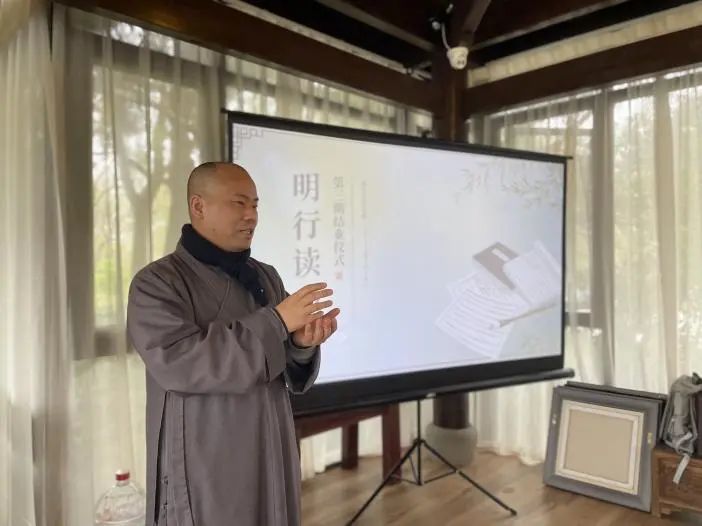 慧澄法师代表书院为大家送结业祝词,感谢学员对读书会和云林书院的支持,他说,《西湖梦寻》一书中有不少与灵隐寺相关的内容,深究其背后文献、古籍资料,还能发现许多灵隐寺祖师的典故。杭州具有丰富的历史人文底蕴,其周边地区也存在着众多还未进入公众视野的传统文化遗迹,值得大家以书化行,明行增智!