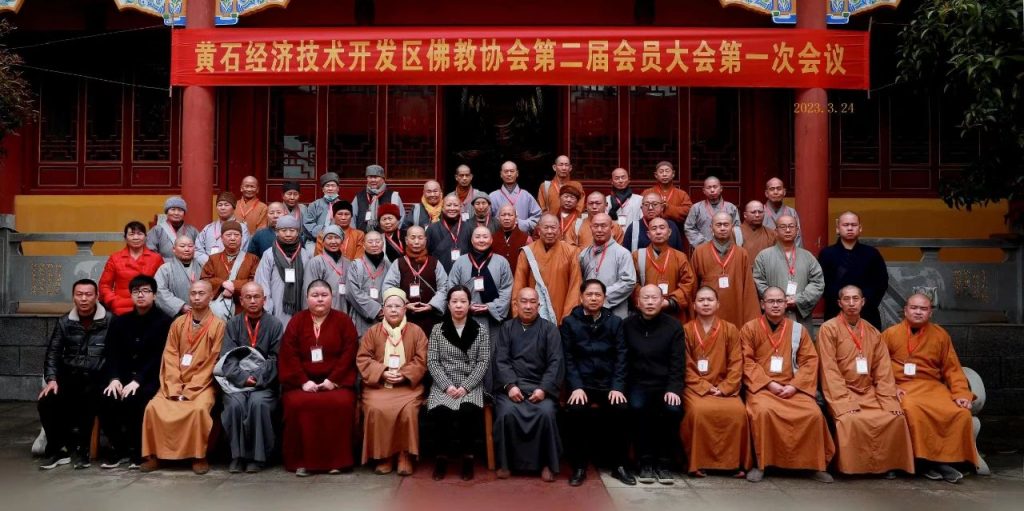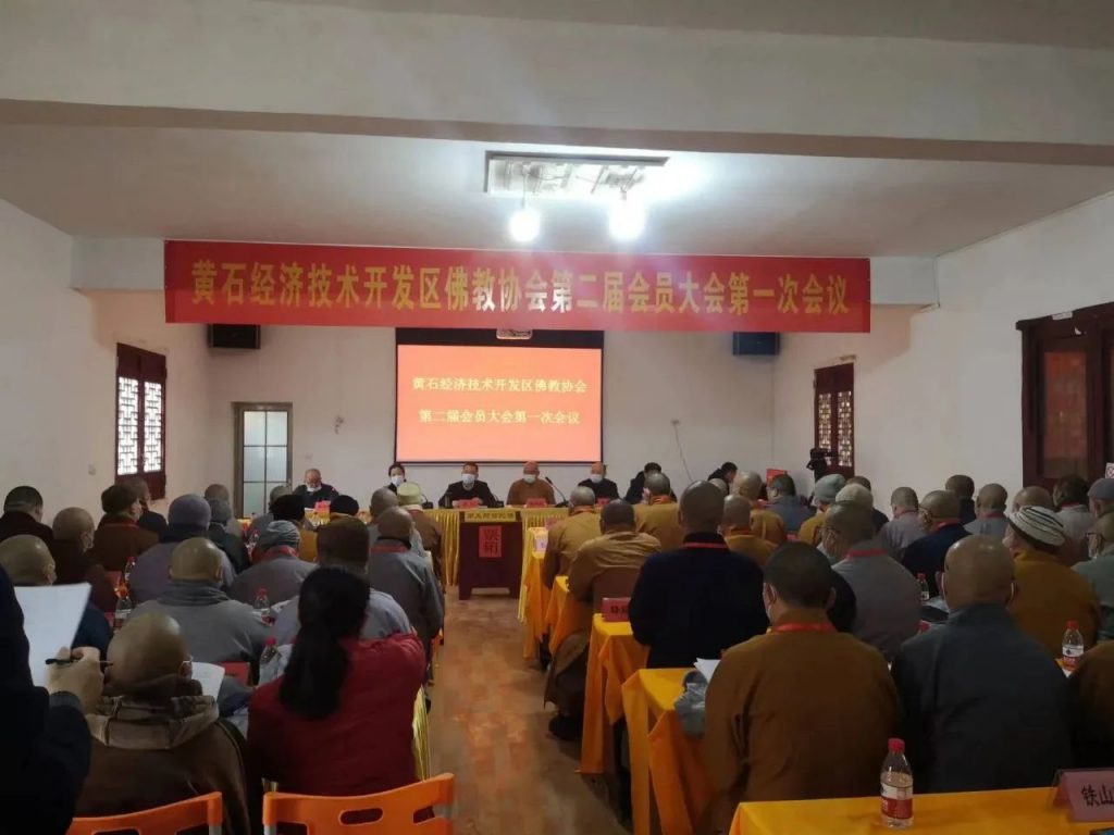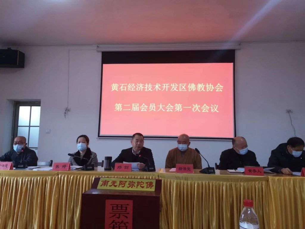 3月24日,黄石市经济技术开发区佛教协会第二次代表会议在尚和古刹召开。黄石市民宗委副主任邓剑,区委统战部副部长、民宗局局长张婷,区委民政局副局长黄参人到会指导,黄石市佛协会长演觉法师、副会长演向法师、悟时法师、智悟法师、指永法师、智涛法师应邀出席,本区佛教界代表53人参会。