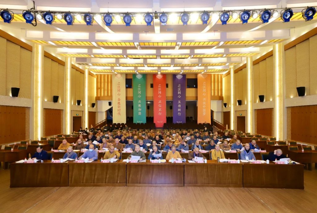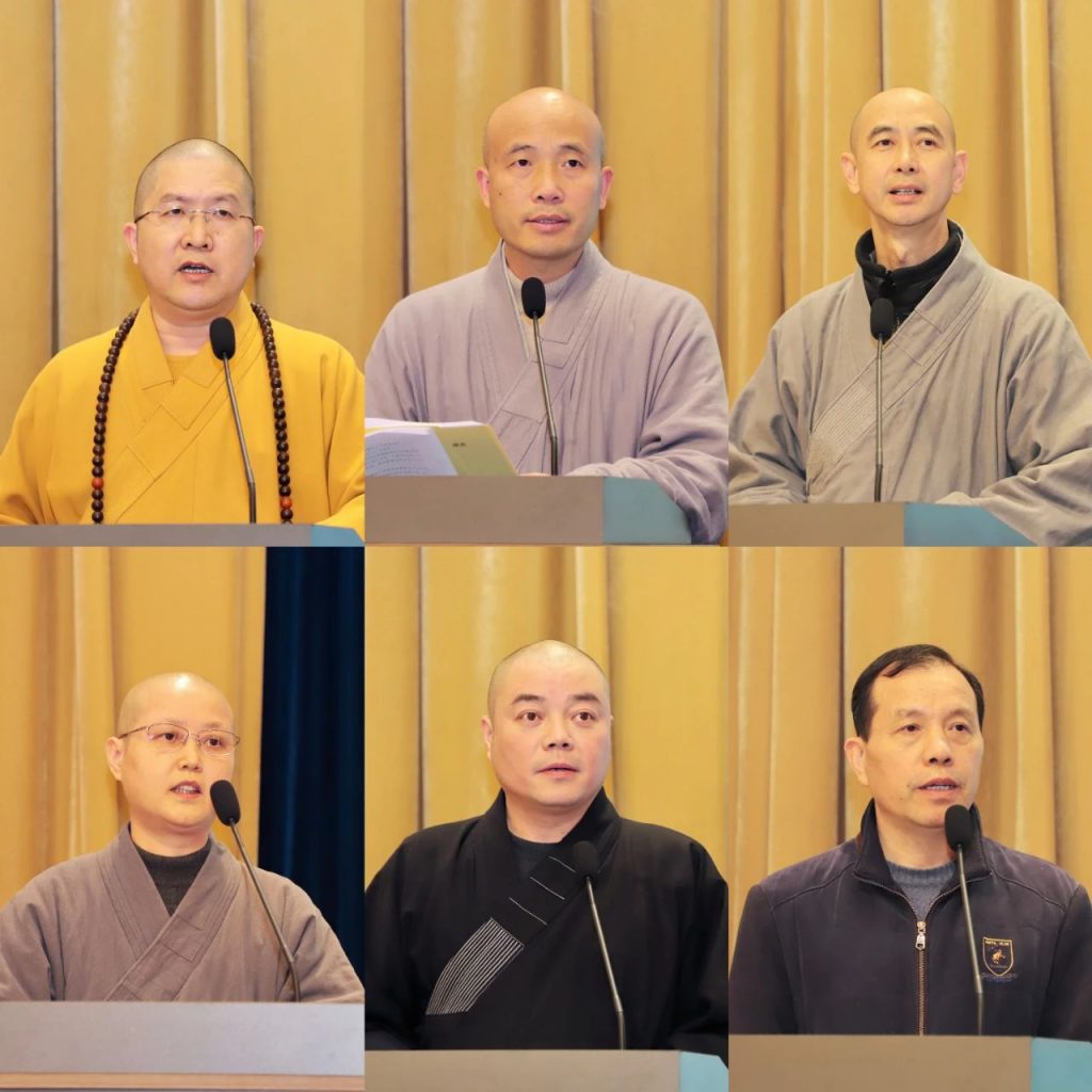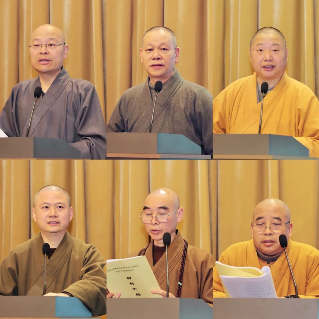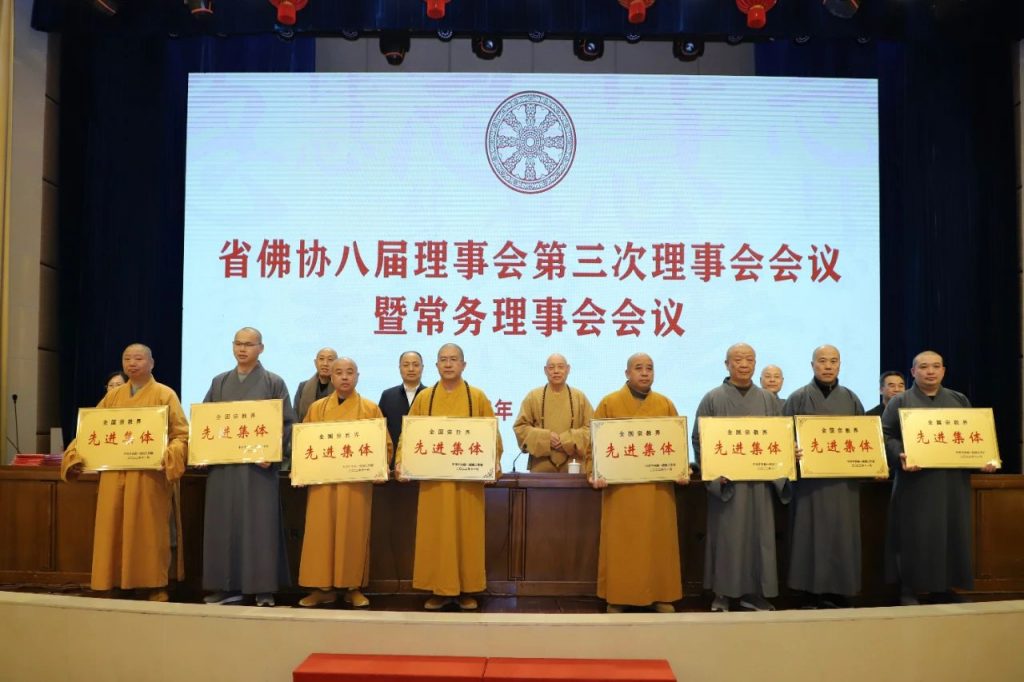 会后,还对2022年12月29日荣获首届全国宗教界先进集体称号的普陀山佛教协会、衢州市佛教协会、浙江佛学院、杭州灵隐寺、温州市太平寺、嘉兴市嘉善县龙庄讲寺、绍兴市炉峰禅寺、台州市天台山国清讲寺,以及获得先进个人称号的道慈法师进行了表彰并颁奖。