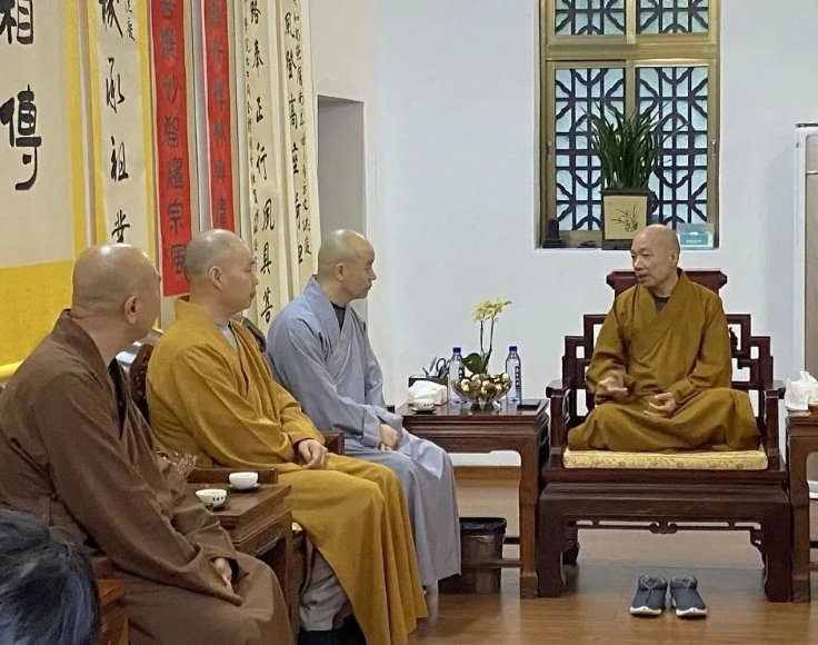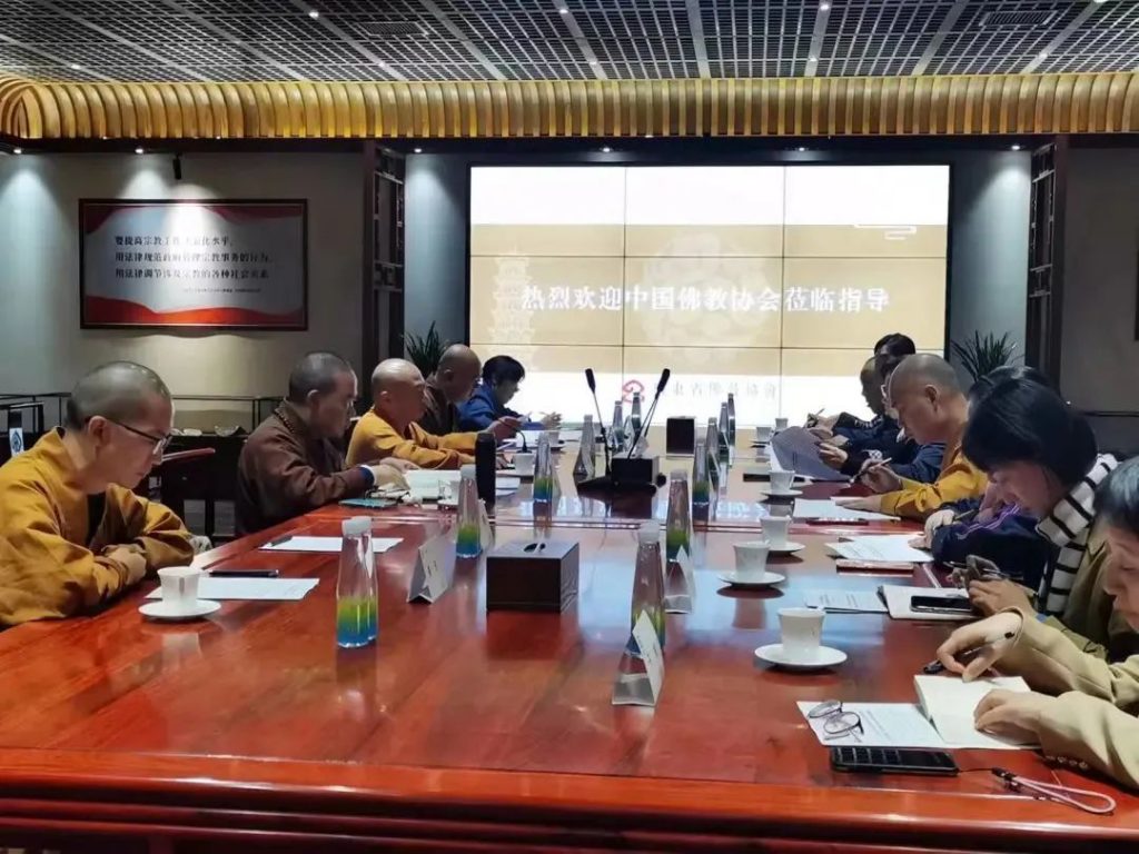 ▲调研组一行在省佛教协会座谈