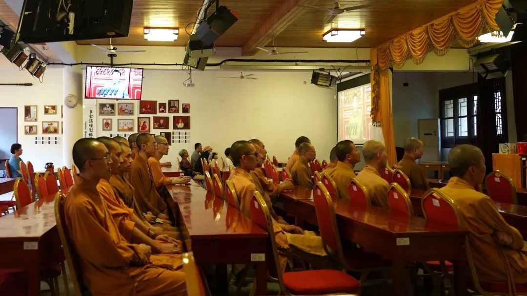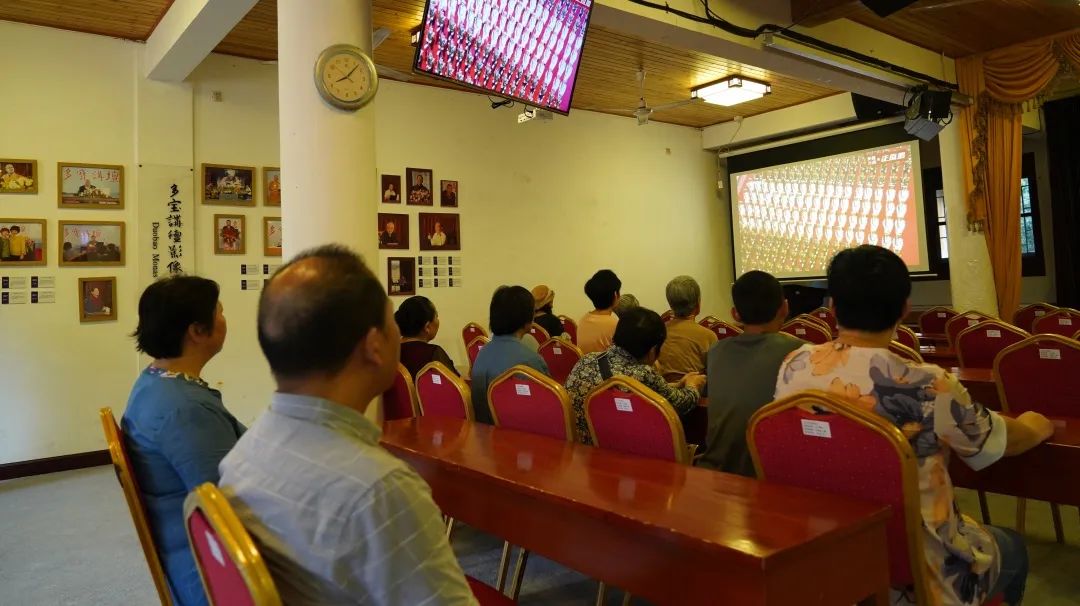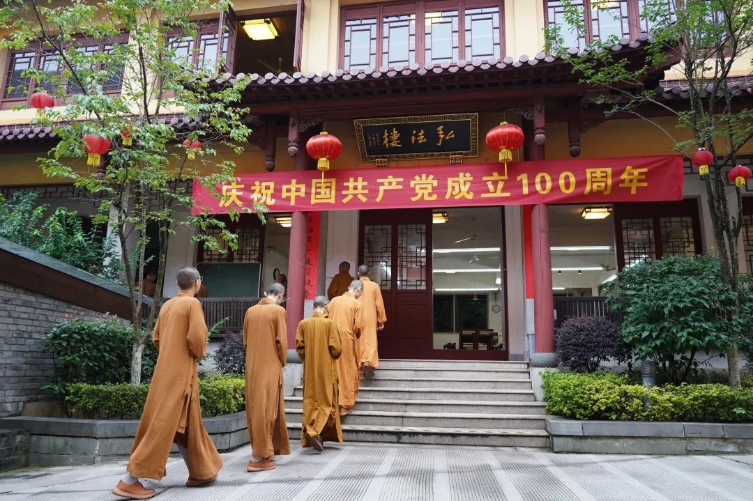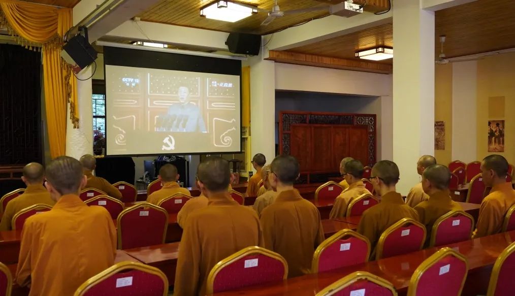升旗仪式结束后,大众一同前往弘法楼二楼观看庆祝中国共产党成立100周年大会现场直播。