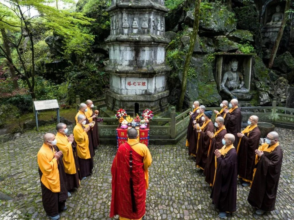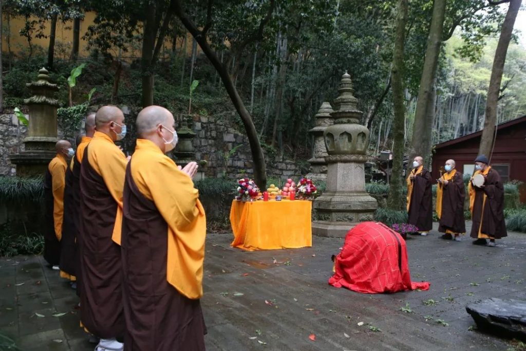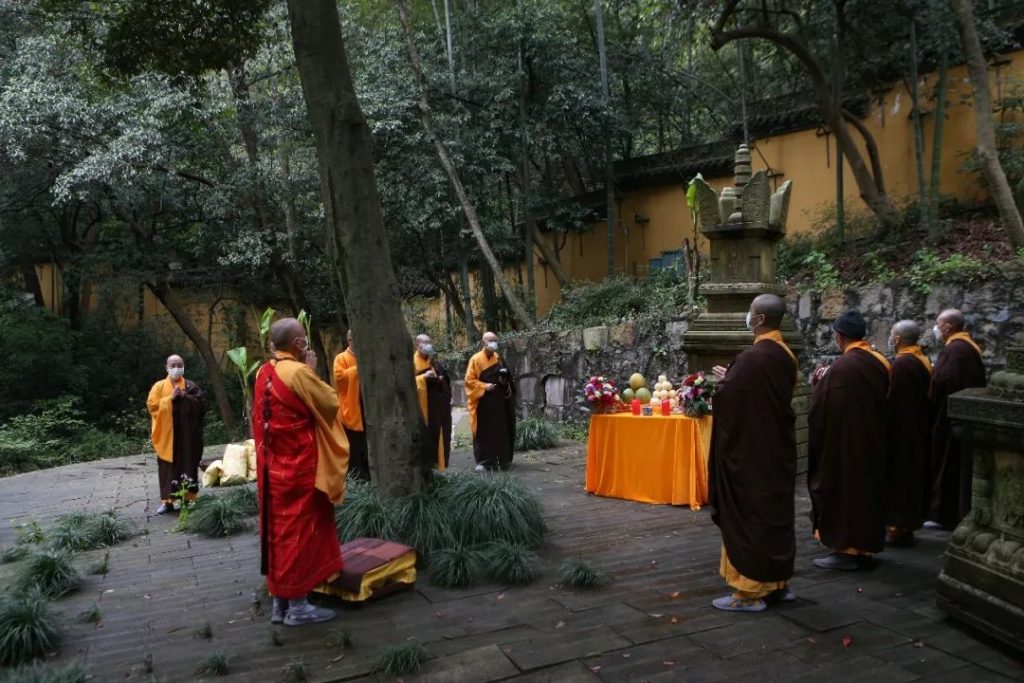 杭州灵隐寺由印度高僧慧理和尚创建于东晋咸和元年(326),距今已经千七百年。开山以来,龙象辈出,历代高僧传扬佛陀正法,荷担如来家业,慈悲济世,广度群生,他们的清净德业福泽黎庶,彪炳史册,更为杭州这座“东南佛国”增光添彩。每逢清明,灵隐寺两序大众都会上供礼祖,以表追慕之情,藉此激励后学感念祖师深恩,效法祖师高行,三学勤修,四恩总报,自利利他,饶益有情。