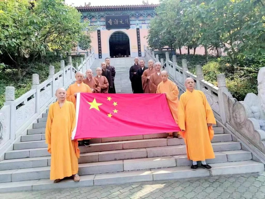 (三)加强示范引领,凝聚思想共识。采取多种形式,加强爱党爱国爱社会主义教育。坚持“四进”常态化,每逢重大节日举行升旗仪式、奏唱国歌活动;坚持社会主义核心价值观进寺院,开辟优秀传统文化专栏,制作宣传《宗教事务条例》、《湖北省宗教事务条例》等宗教政策法规展板;举办“紧跟党走、同向同行”宗教界人士庆祝中国共产党成立一百年大型书画展;利用清元禅寺公众号开辟的“讲经论谈”专栏和讲经布道中,融入社会主义社会核心价值观和中国优秀传统文化的诠释,凝聚思想共识,坚定热爱党热爱祖国的信念。