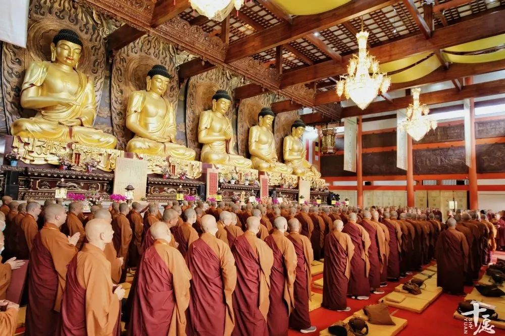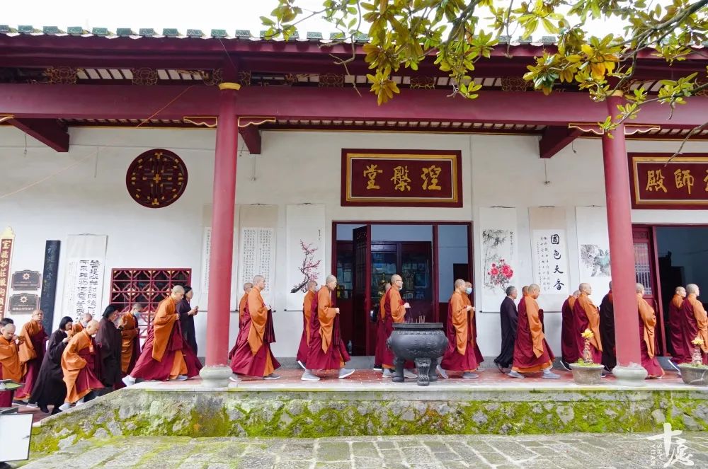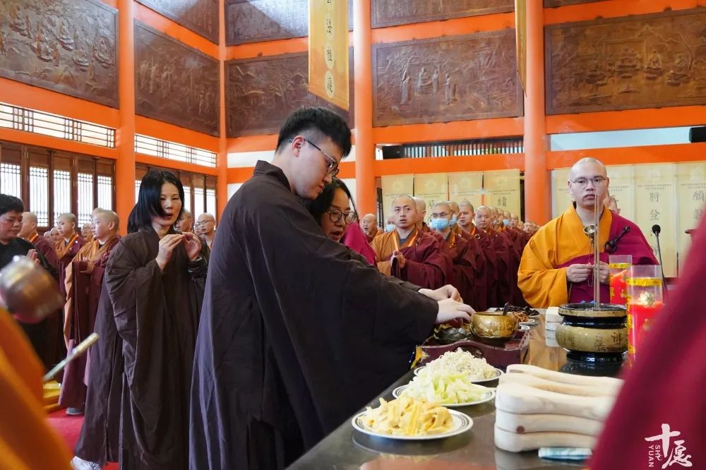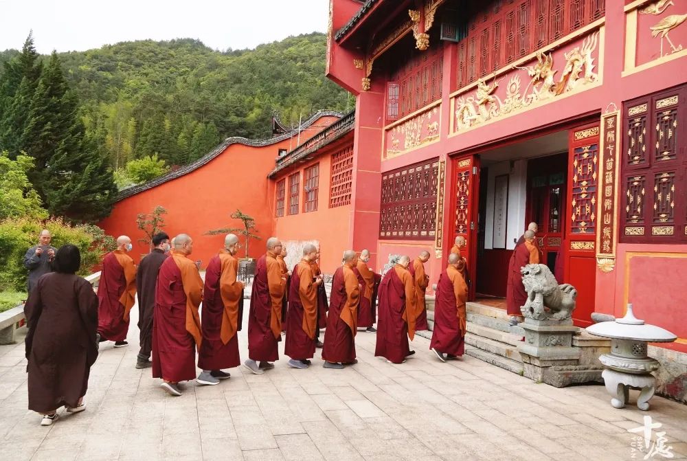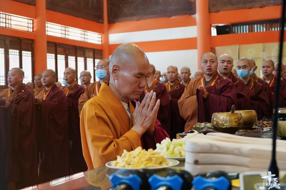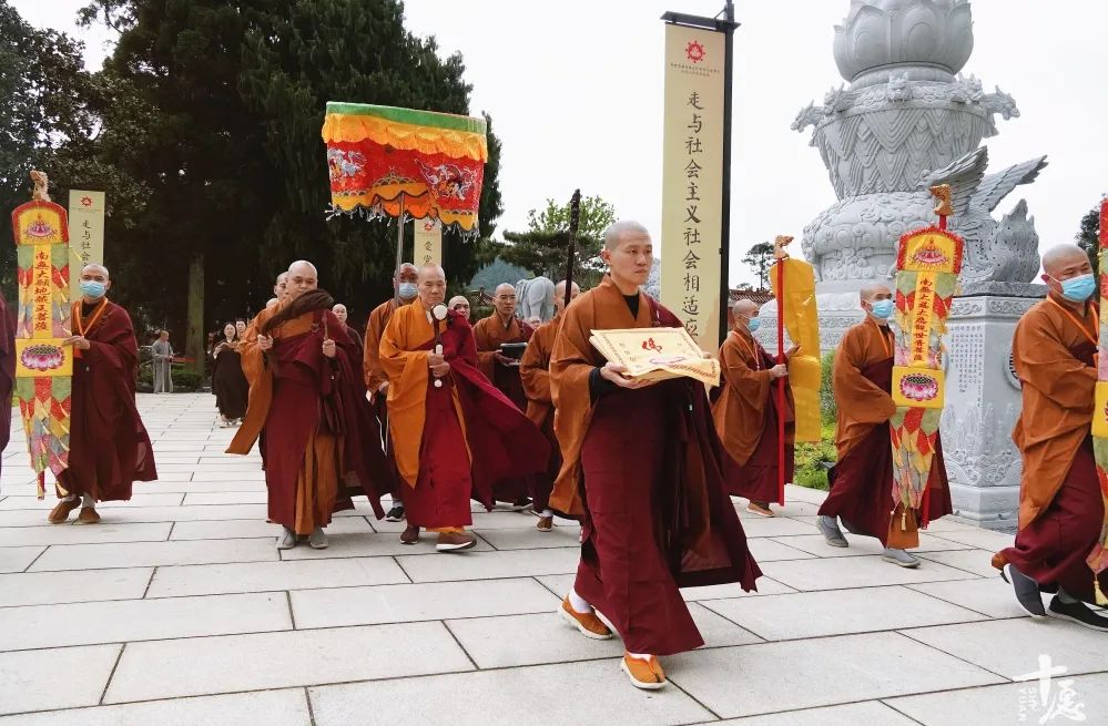 2023年4月15日,福州雪峰崇圣禅寺三坛大戒第二十三天,浙江省金华市佛教协会会长明修大和尚带领众善信众来山广修供养,上午九时举行上堂大斋活动。