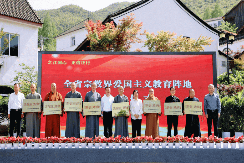 启动仪式现场,举行了省级宗教界爱国主义教育阵地授牌仪式。余杭区佛协会长、径山寺方丈释戒兴,省天主教爱国会常委、海门天主教堂神甫许永亮,湖州市基督教三自爱国运动委员会副主席、德清基督教堂主任牧师陈志良代表宗教团体、宗教界爱国主义教育阵地交流发言。