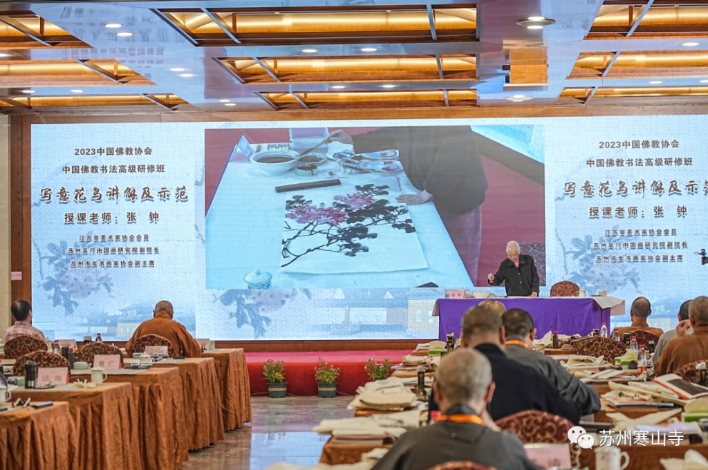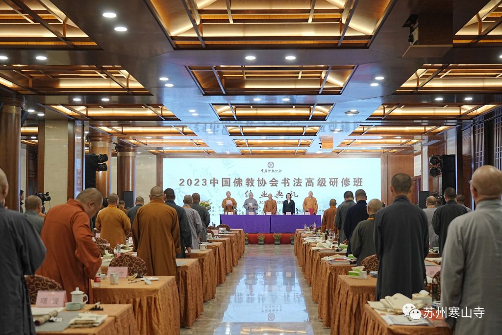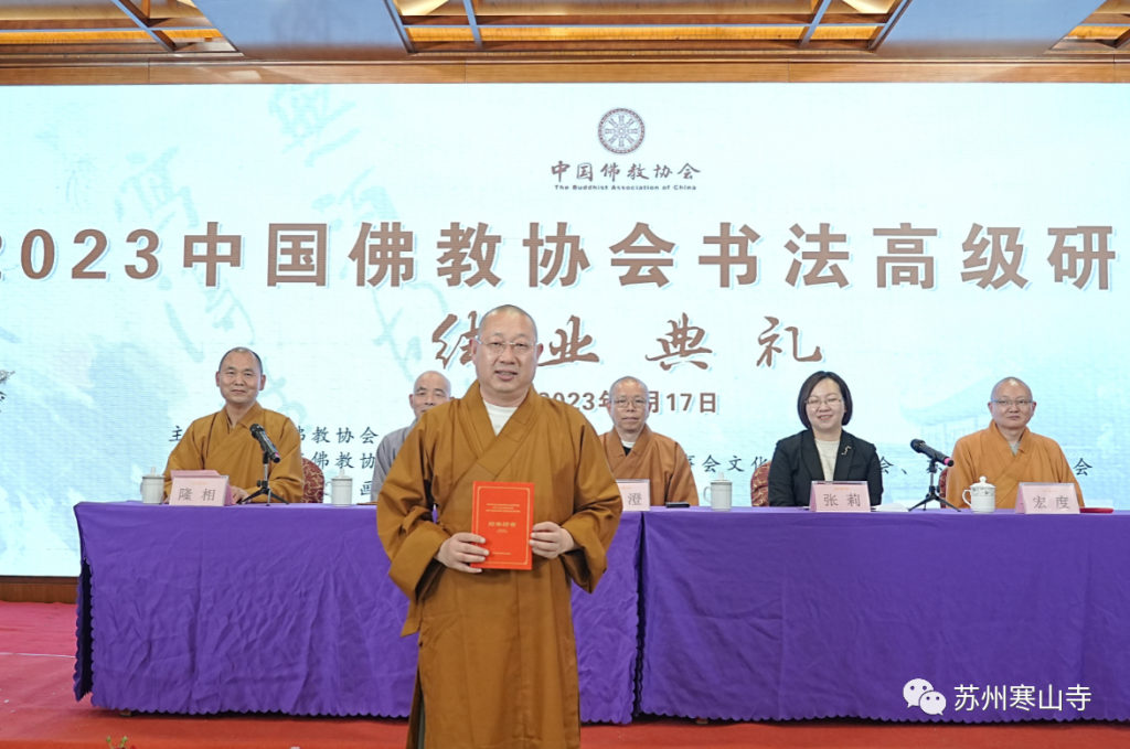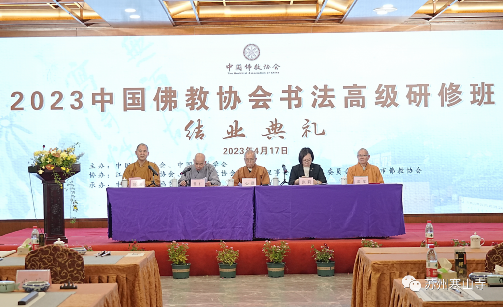 4月17日,由中国佛教协会、中国茶禅学会主办,江苏省佛教协会、苏州市佛教协会协办,中国佛教书画艺术交流基地、苏州市寒山寺承办的“2023 中国佛教协会书法高级研修班”结业典礼隆重举行,经过为期七日的培训学习,圆满结业。