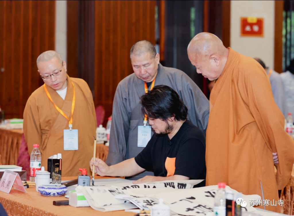 苏州市佛教协会会长普仁大和尚代表苏州市佛教协会和苏州佛教四众弟子对圆满此次活动的各位领导、法师、嘉宾表示热烈祝贺。对大家在此过程中所取得的丰硕成果表示随喜赞叹。这场以笔墨为媒介的文化艺术盛宴,无疑为苏州市佛教文化乃至全国的佛教文化艺术事业带来了新的活力与动力。