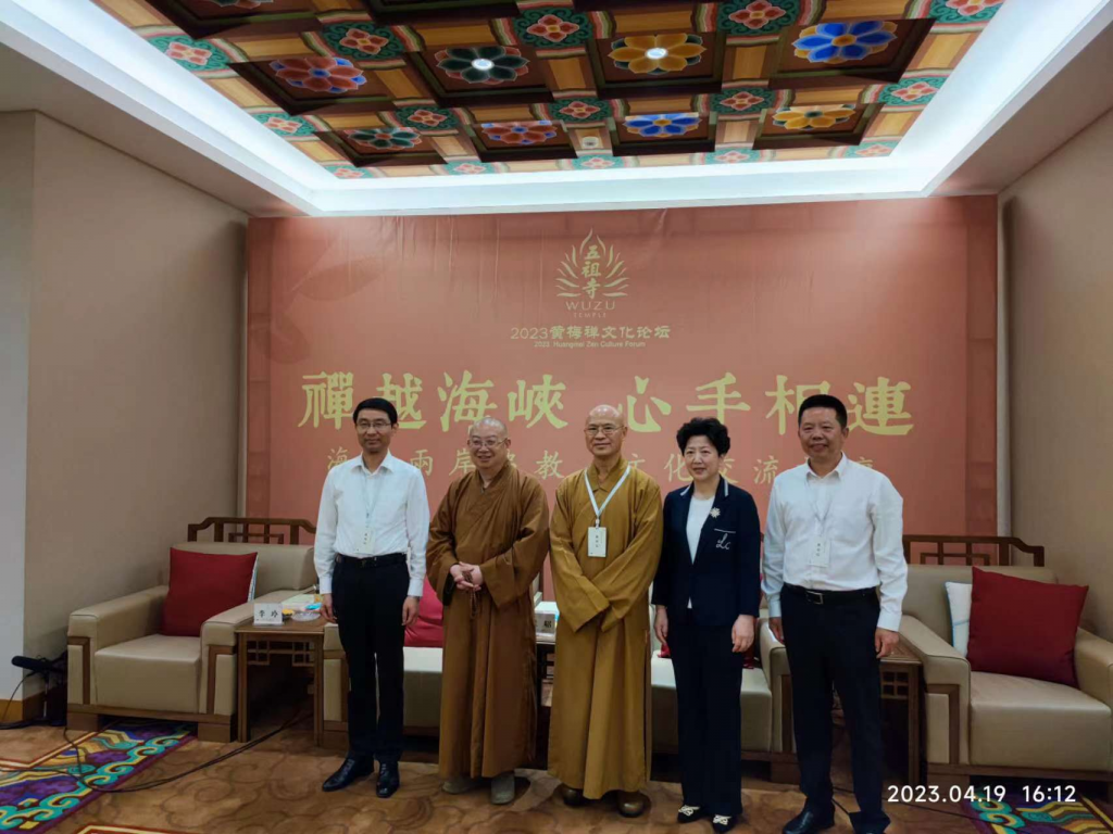 4月19日,“禅越海峡 心手相连”—海峡两岸佛教文化交流研讨会在海峡两岸交流基地五祖寺举办,省台办副主任陈世强,黄冈市委常委、统战部长李玲,黄梅县委书记刘欲晓以及来自两岸四地的高僧大德和专家学者参加活动。