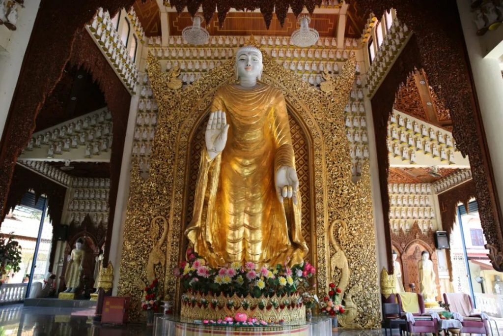 马来西亚槟城缅甸寺院中的释迦牟尼佛立像