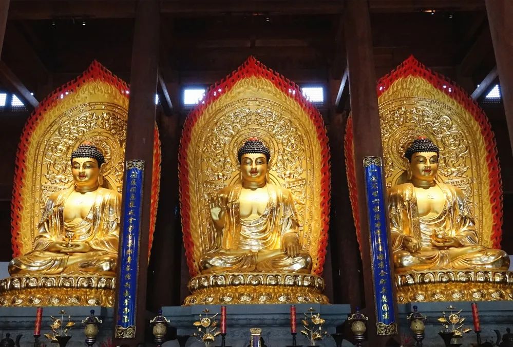 是按时间先后排列的;中间为释迦牟尼,为现世佛;左边(东)为释迦牟尼的老师“燃灯佛”,亦称“过去佛”;右边(西)为“弥勒佛”,释迦牟尼弟子,亦是法嗣,也称“未来佛”。