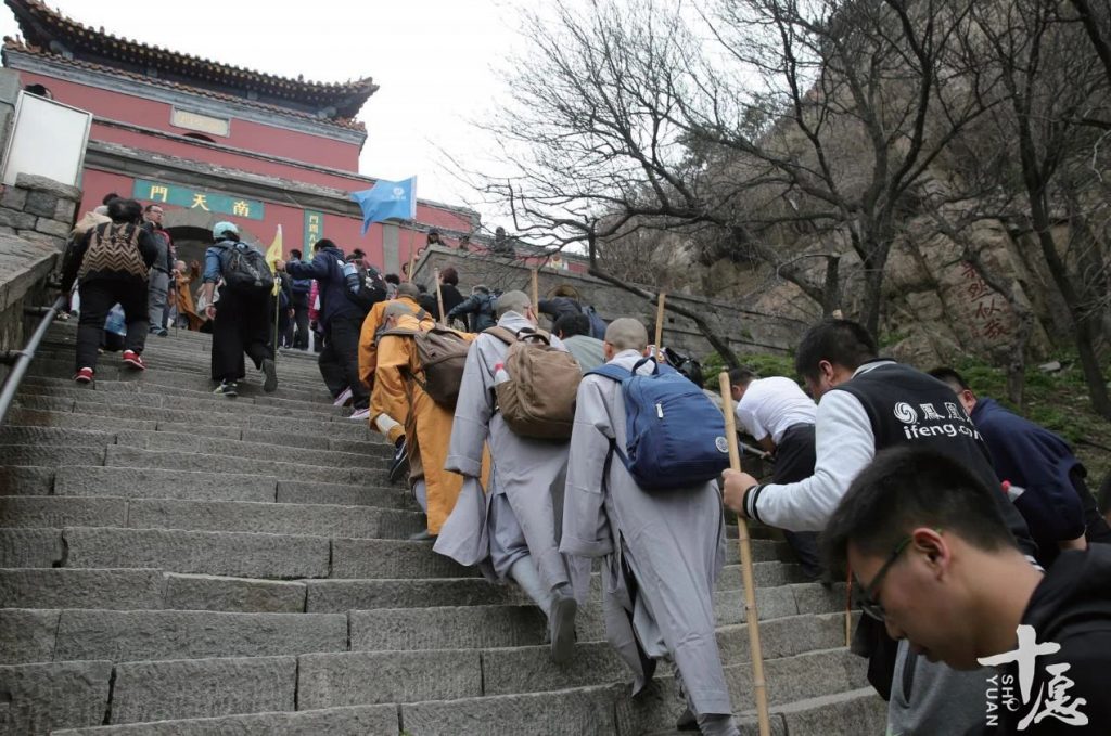 2017年,山东汶上宝相寺交流营,团队拓展登泰山