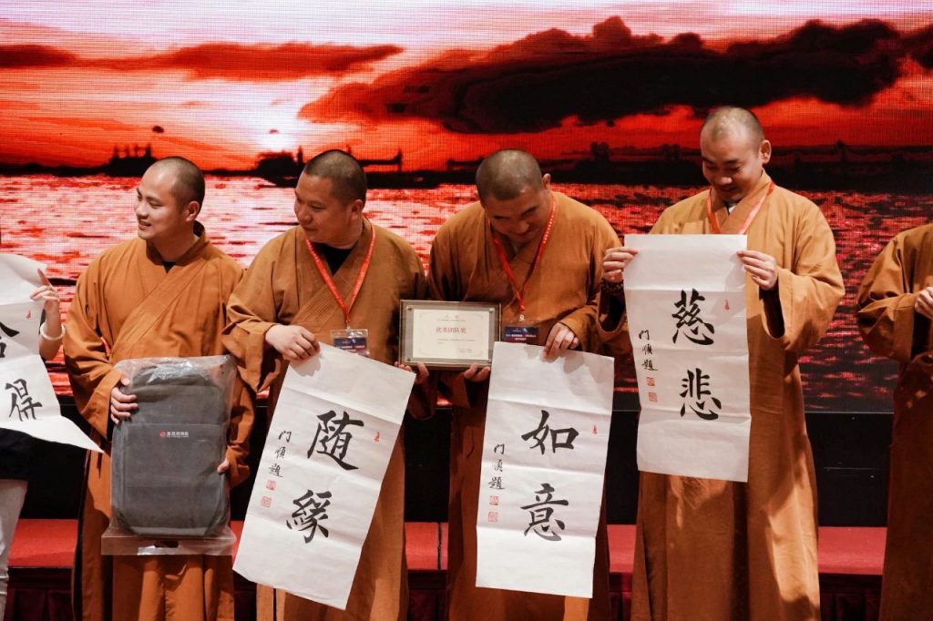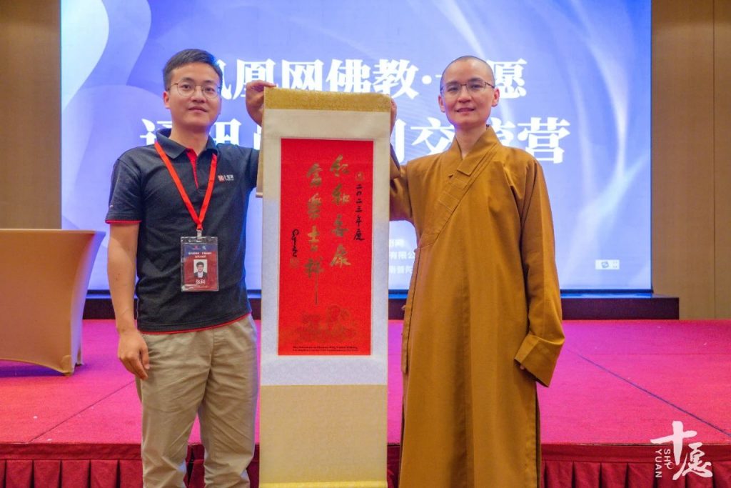 导师妙熙法师赠送星云法师法语书法,十愿网董事长张科代表交流营接受礼品