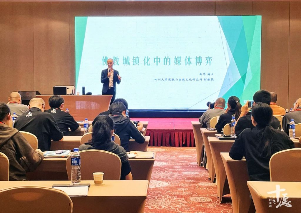 四川大学道教与宗教文化研究所副教授、硕士生导师吴华为大家做《媒体博弈中佛教城镇化》主题分享。
