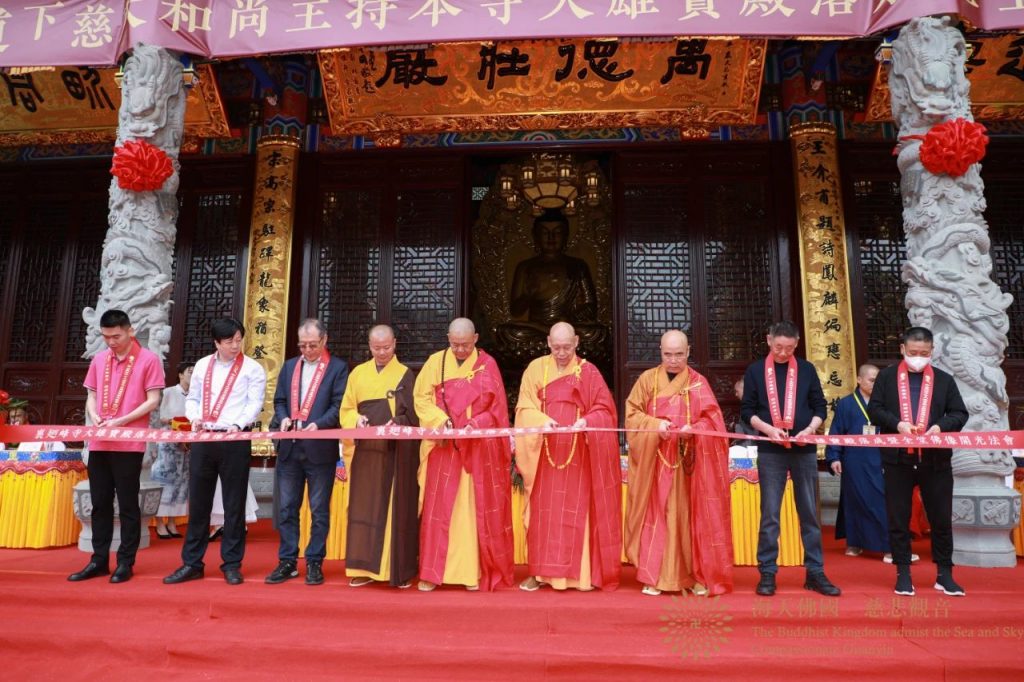 最后,会长道慈大和尚与领导嘉宾、诸山长老共同为大雄宝殿落成剪彩,法会庆典吉祥圆满。