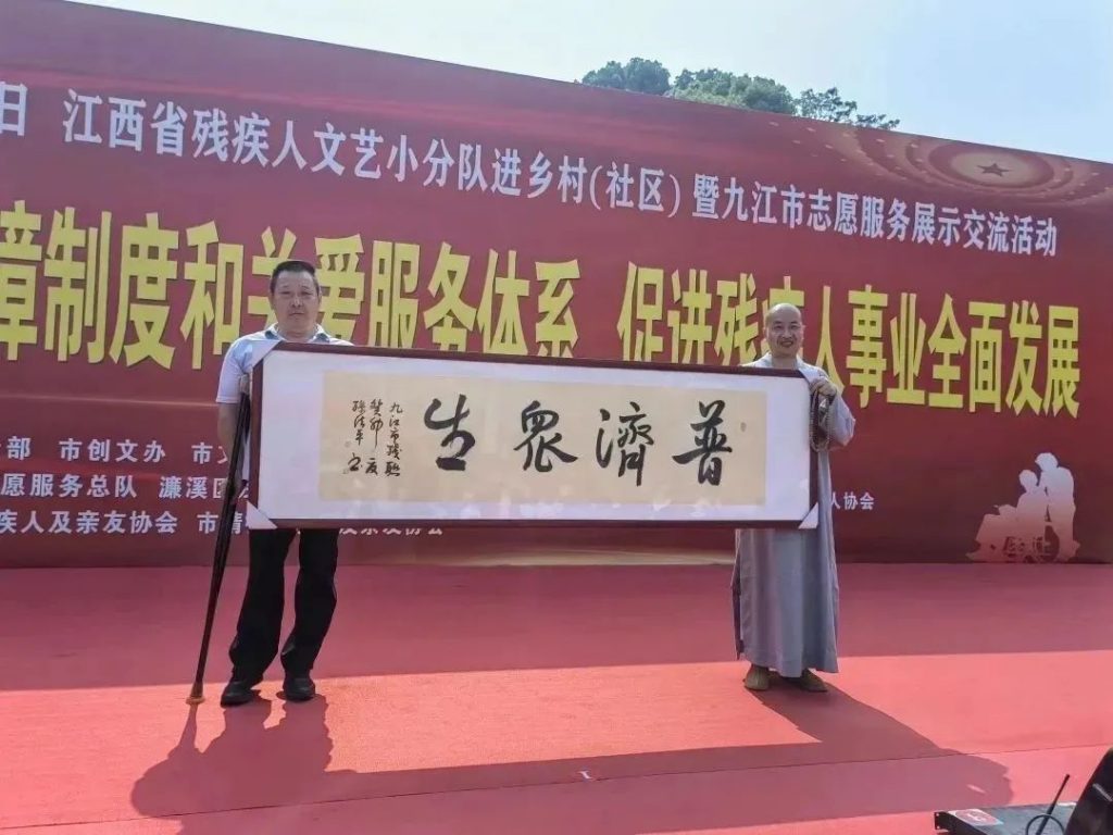△九江市残联向庐山东林寺回赠“普济众生”牌匾