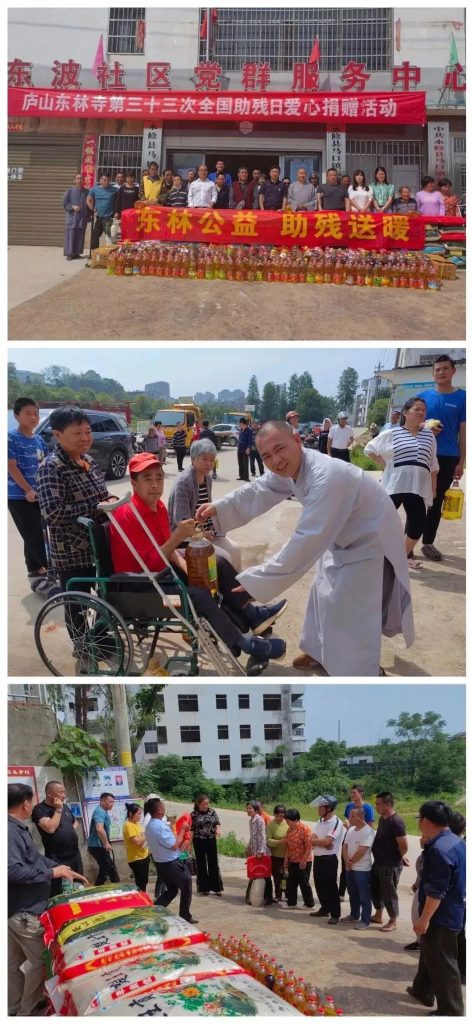 在第三十三次全国助残日来临之际,庐山东林寺连续第二年把助残日拓展成助残周。祖庭慈护会累计投入资金21万余元,从5月13日起开展了为期一周的助残服务慰问活动,为千余名残疾人送去了帮扶和温暖,鼓励他们自强不息、乐观进取,努力开创自己的幸福未来。