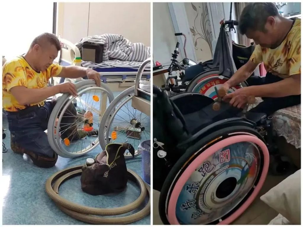 “东林寺去年捐的轮椅配件,都是原装的,质量好,我给伤友们的旧轮椅换上新配件之后,他们使用轮椅就安全多啦!”H群连连表达了感激之情。