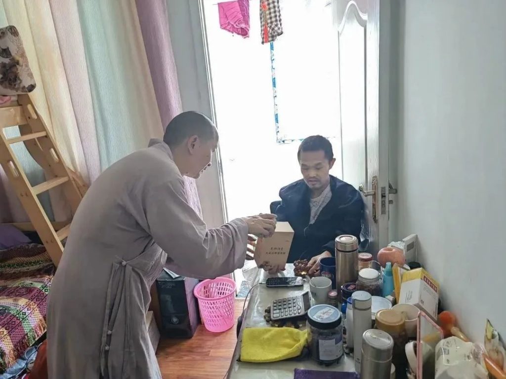 在慈护会慰问的对象中,有多名残疾人的家庭,也有多重残疾或伴有其他重症的患者……情况不一,各有不幸。师父们每看望、慰问一户残疾人家庭,都关切问询他们的身体状况,倾听他们的心声以及实际的困难需求等,为生活困顿者排忧解难,为身残志坚者赞叹加油,鼓励他们增强信心,保持积极乐观的心态面对生活。温暖人心的话语、饱含真情的行动,让残疾人感受到了来自东林祖庭的无尽慈悲和关爱。