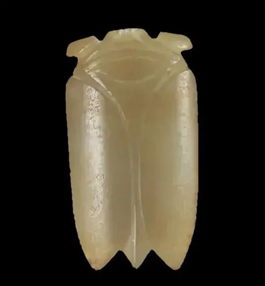 在2千多年前的汉朝,这种玉蝉或被人系于腰间,表明主人如玉蝉般品质洁净,或是放入亡者口中,称之为“玉琀”或“琀蝉”,寄托羽化复活,早豋仙界的期许。